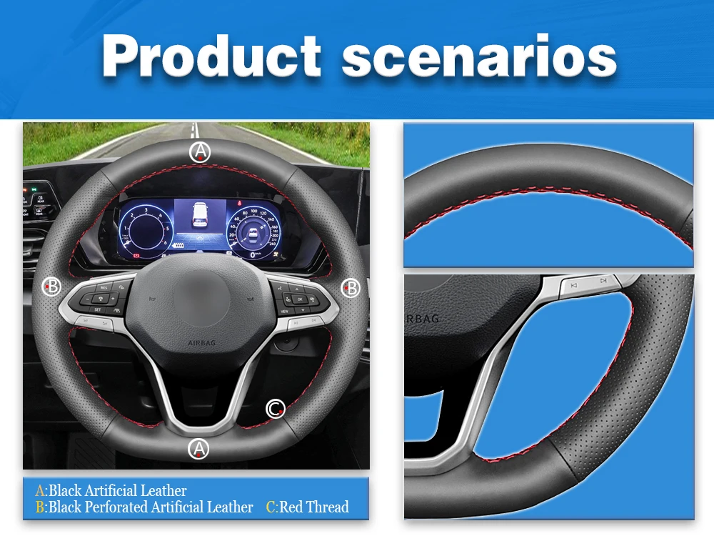 Черная искусственная кожа ручная строчка искусственная кожа для Volkswagen VW Golf 8 2020 Atlas 2020-2021