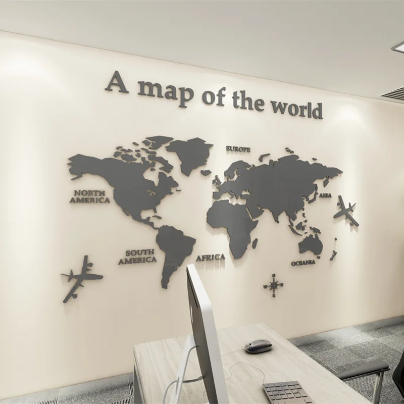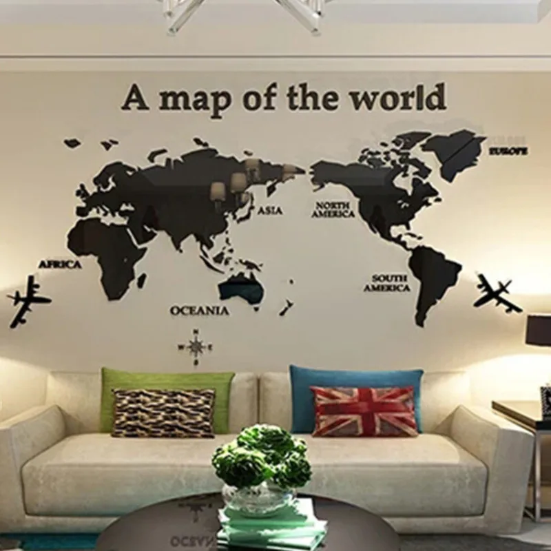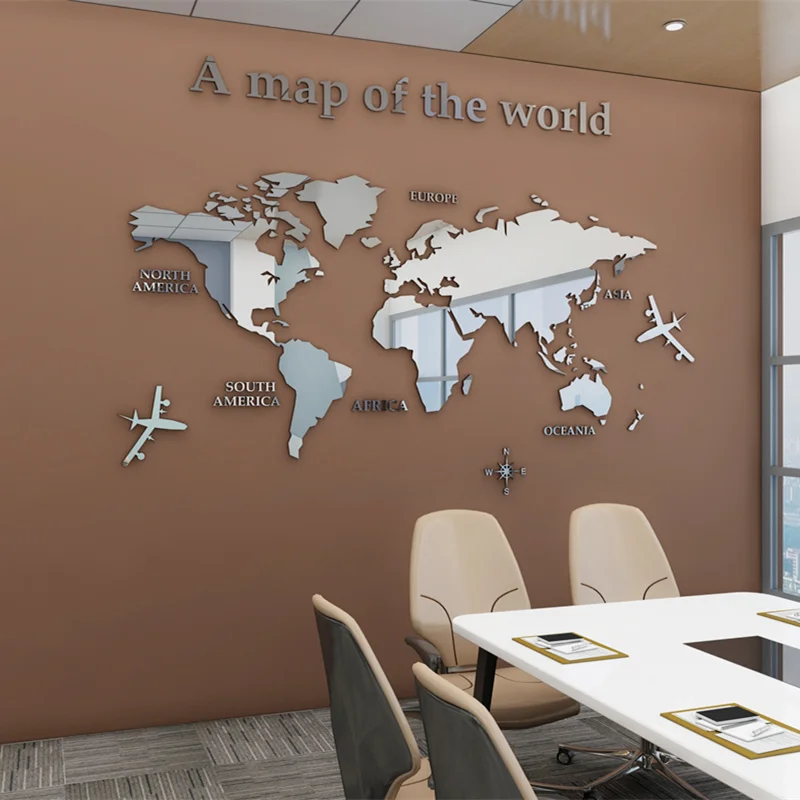 Карта мира, акриловая Наклейка на стену, 3D твердые кристаллы, зеркальные настенные наклейки с гостиной, для спальни классной комнаты офисное украшение для стен