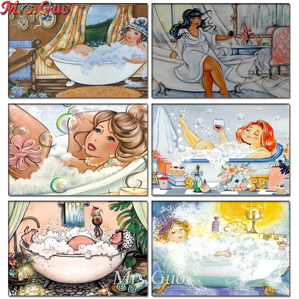 5D Сделай Сам Алмазная картина мультфильм милый купальный толстый леди домашний декор полный квадрат Алмазная вышивка крестиком Алмазная мозаика