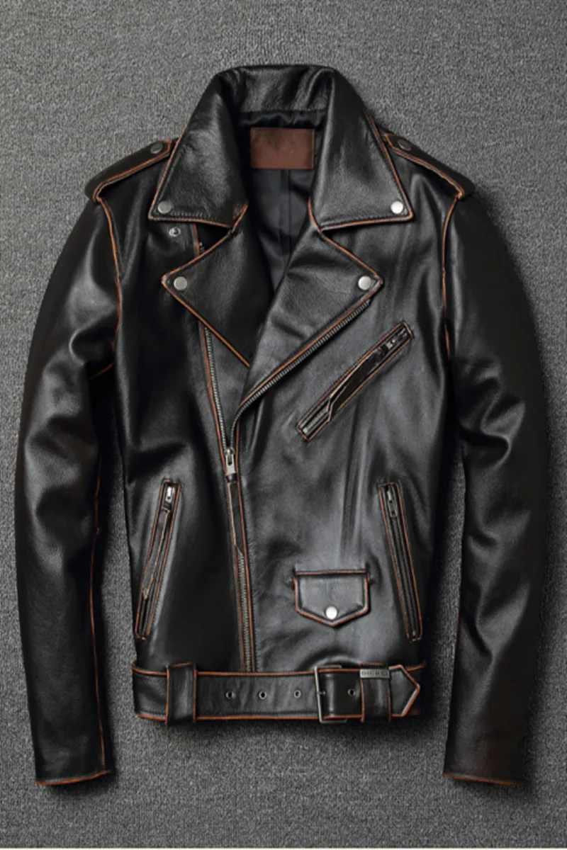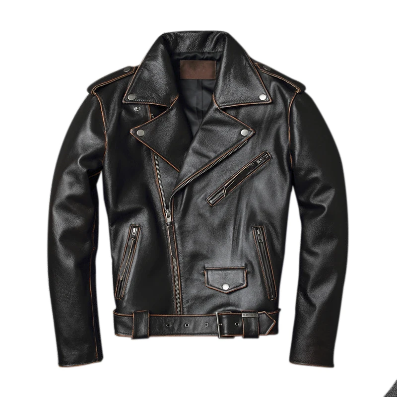Мужские Винтажные Мотоциклетные Куртки из натуральной кожи, байкерс...