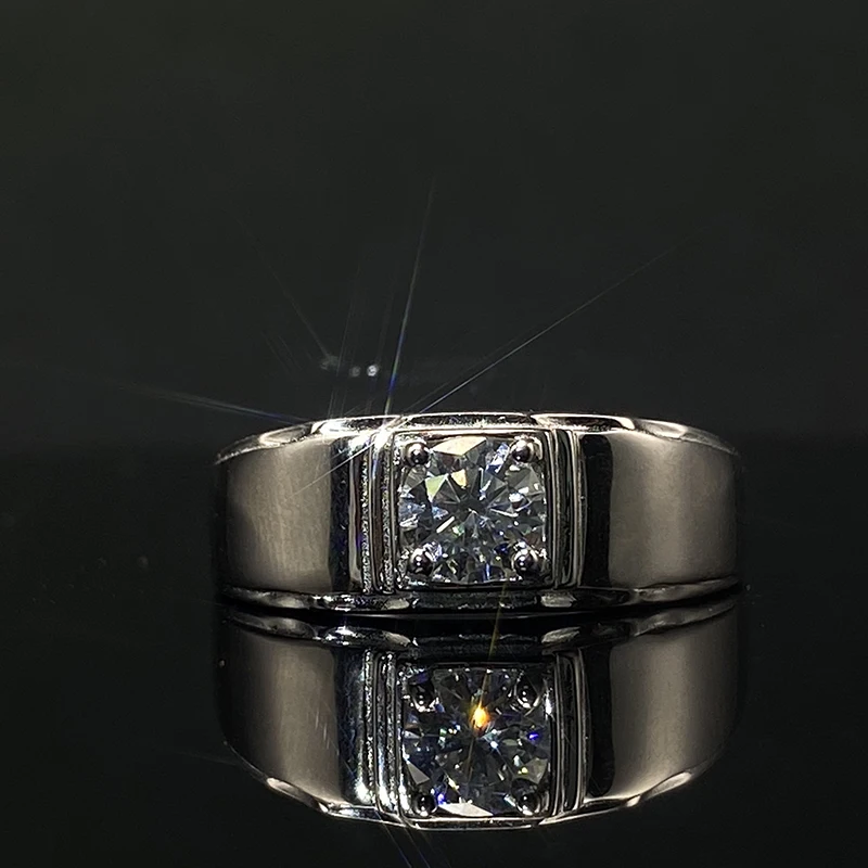Мужское кольцо из серебра 925 пробы с муассанитом, 0,5 карат