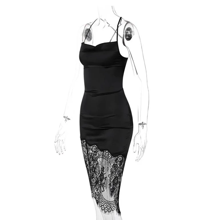 Кружевные бандажные платья-миди на бретелях-спагетти, элегантное мо...