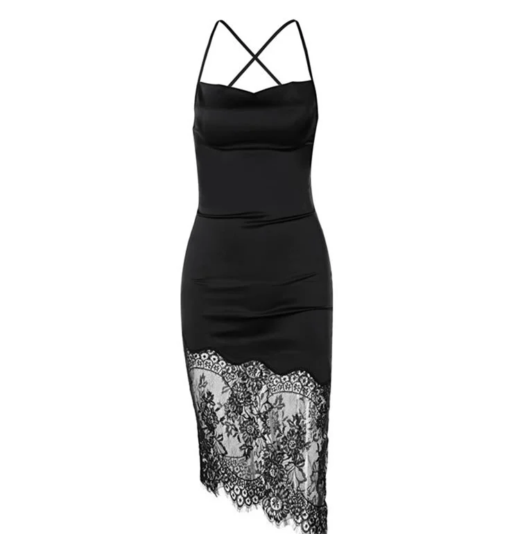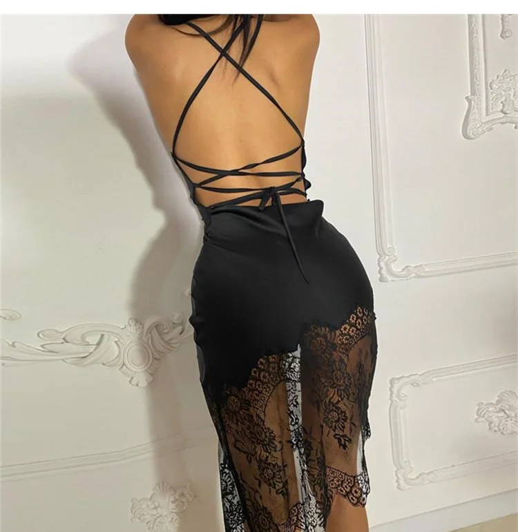 Женское кружевное платье Sibybo, черное, на тонких бретелях, с откр...