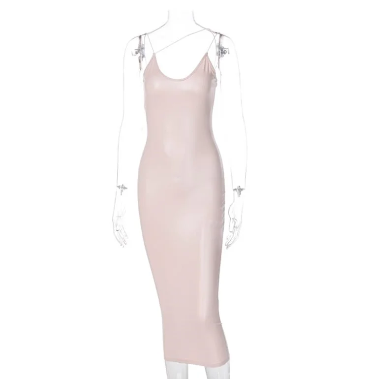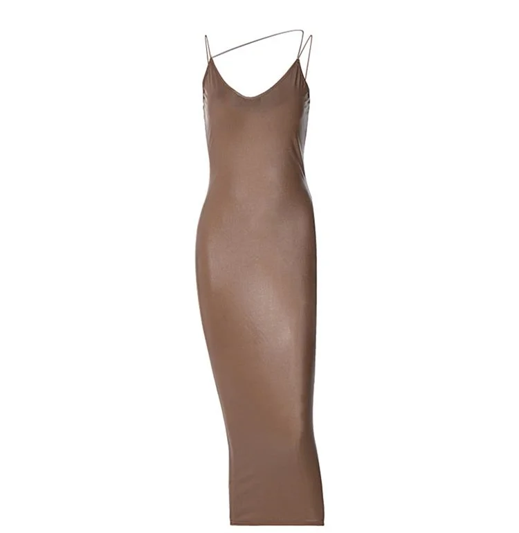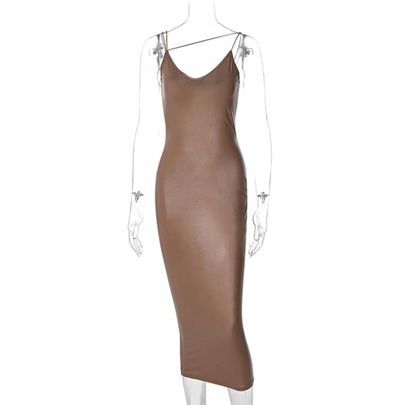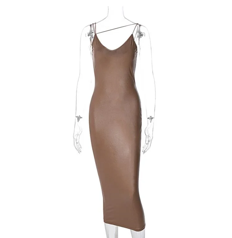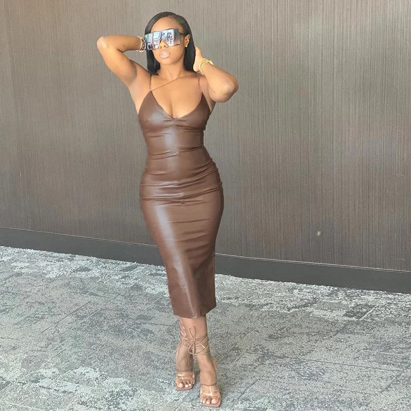 Pu искусственная кожа женские миди платье на бретелях с v-образным ...