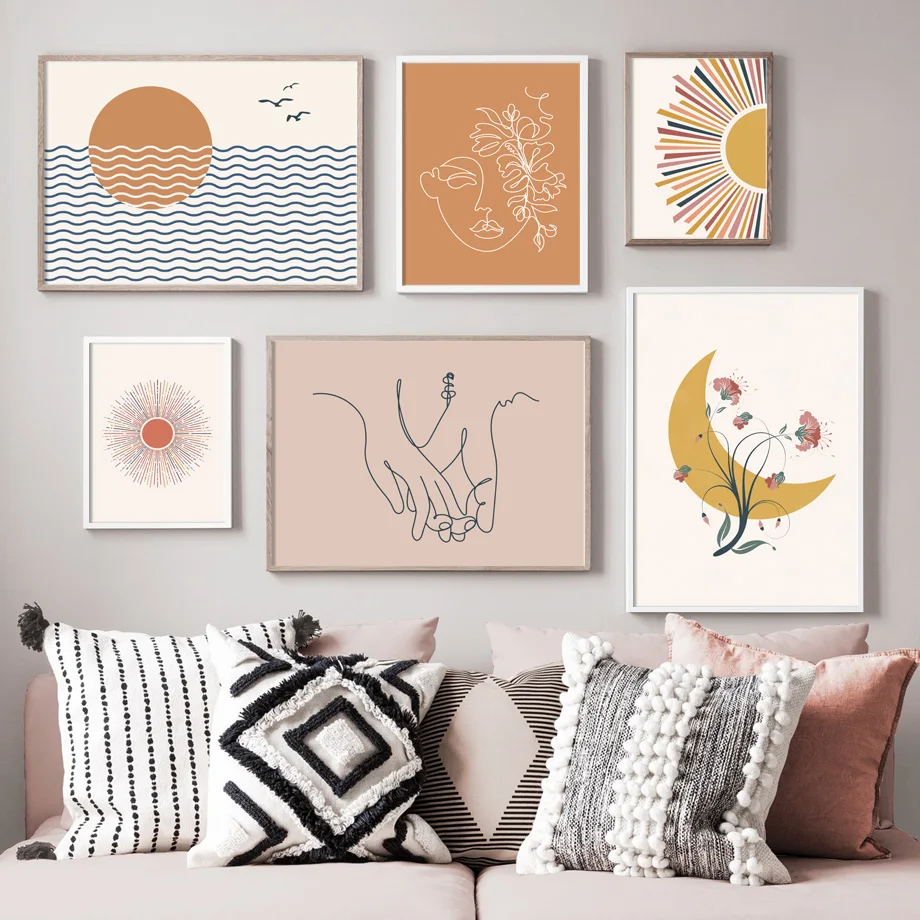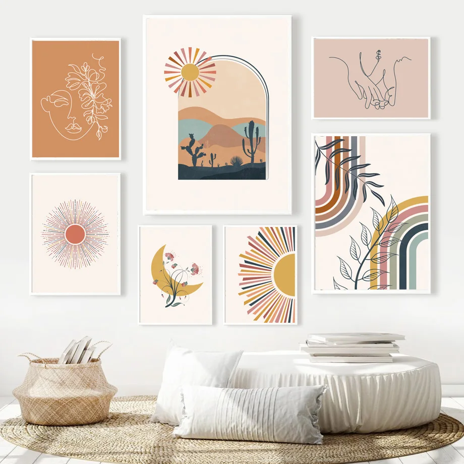 Абстрактная Настенная картина в стиле бохо, постеры и принты в скан...