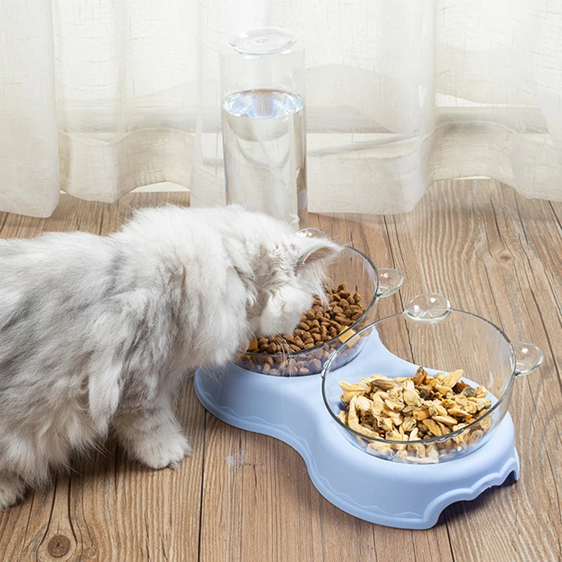 Миска для кошек, автоматическая кормушка для собак кошек, миска для еды с водным фонтаном, двойная миска, подставка для питья, миски для кошек