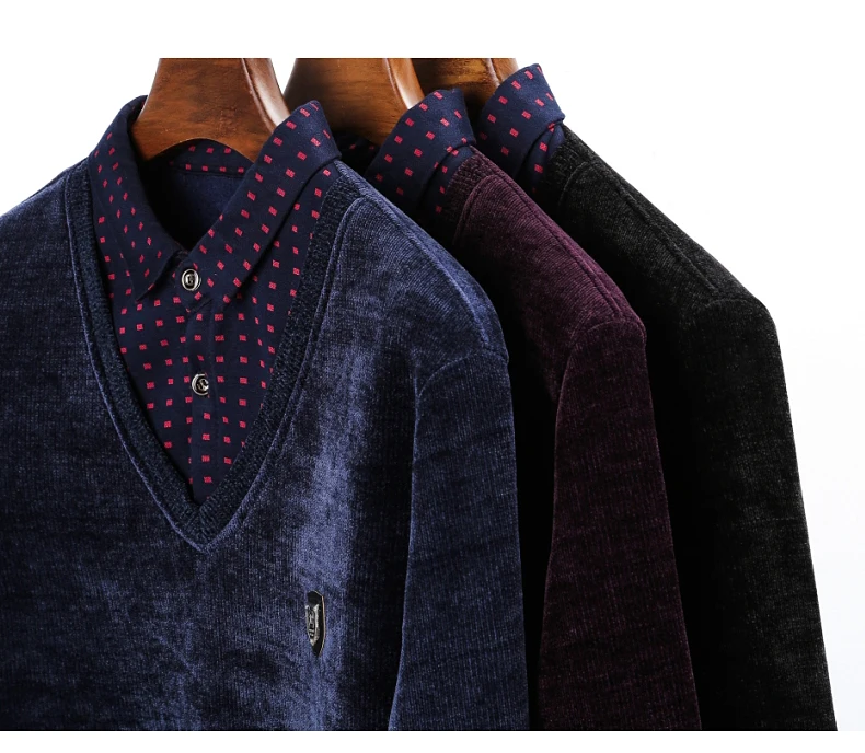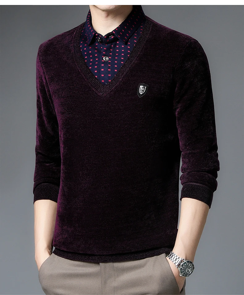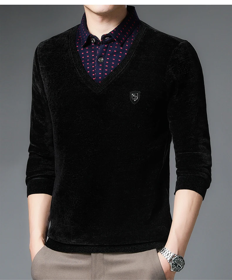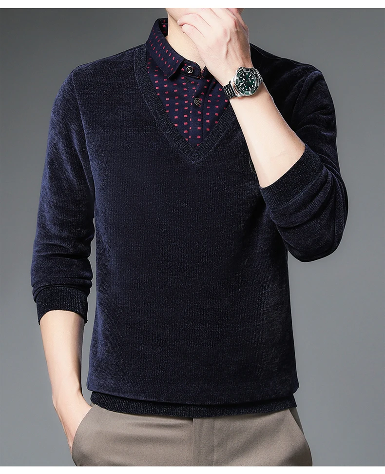 Новинка, модный брендовый корейский стиль, толстый теплый вязаный пуловер, шерстяной роскошный Повседневный джемпер с имитацией двух предметов, мужская одежда Y391