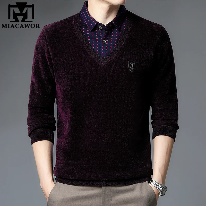 MIACAWOR зимний свитер мужской Повседневный пуловер на молнии мужск...