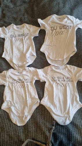 Это шире, чем обычно, в одежде 0-3 месяца, и пластиковые колпачки, я не думаю, что они будут длиться долго. У него нет плохого качества ткани, персонализированный выглядит красиво и доставка была быстрой