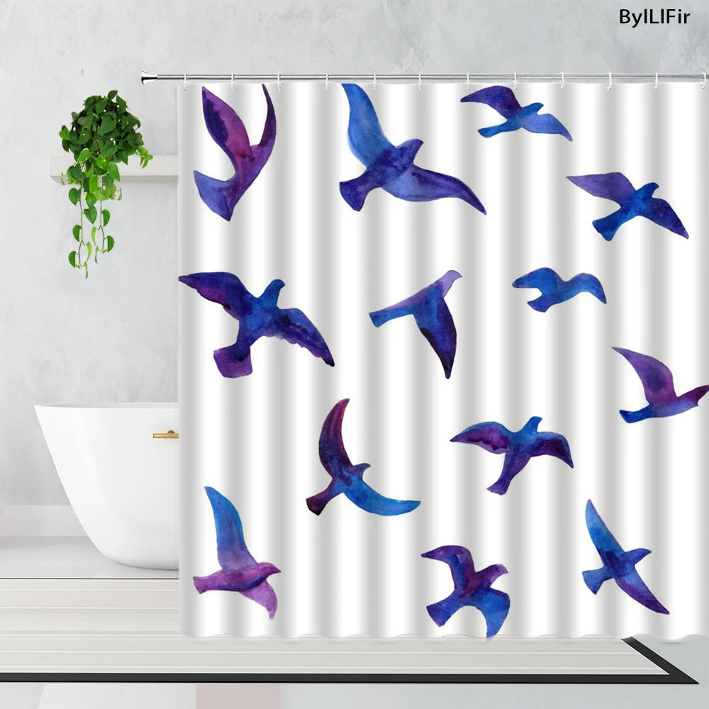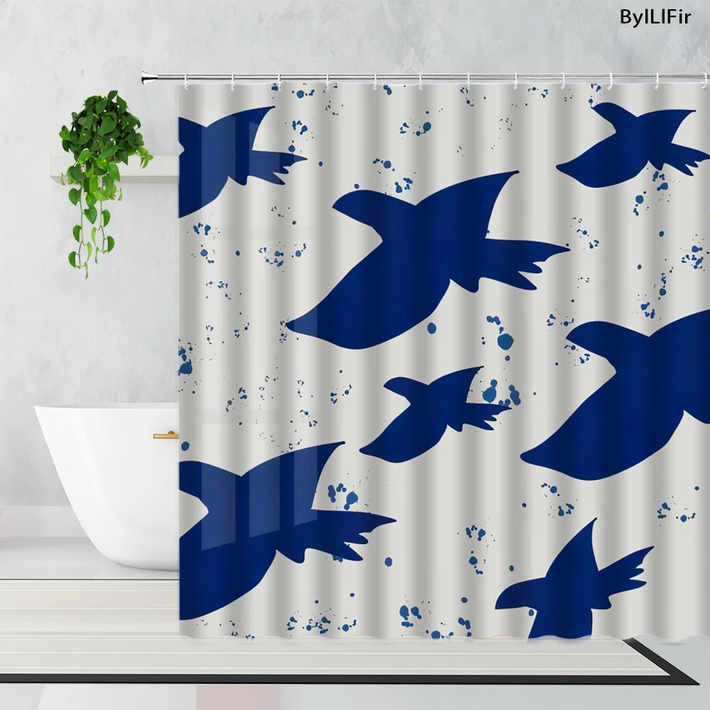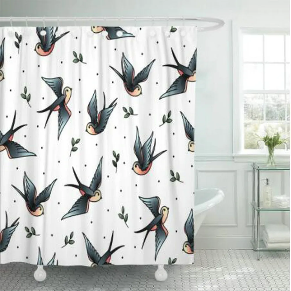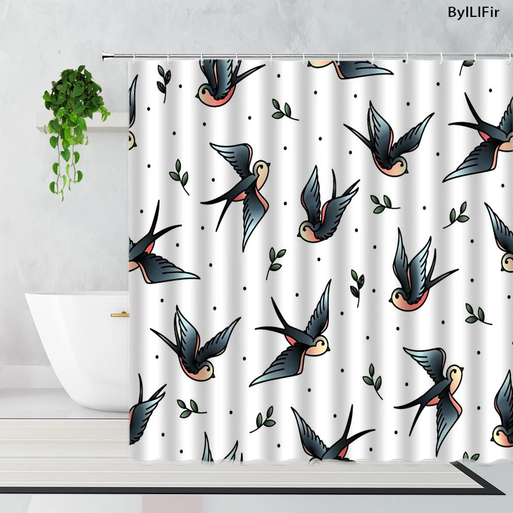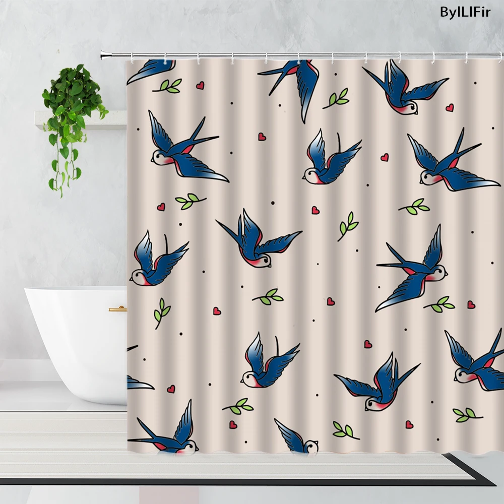 Черная винтажная школьная занавеска с татуировкой, занавеска для душа в форме сердца, на День святого Валентина, свадьбу, дизайнерские книги, занавеска для ванны с синей птицей