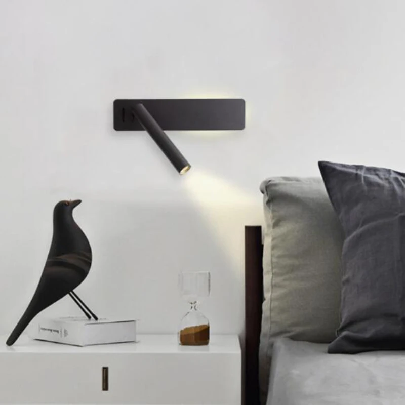 Современная светодиодная настенная лампа, светильник для чтения для спальни, лампа для ночной книги, вращающаяся прикроватная настенная лампа с точечным светодиодным освещением