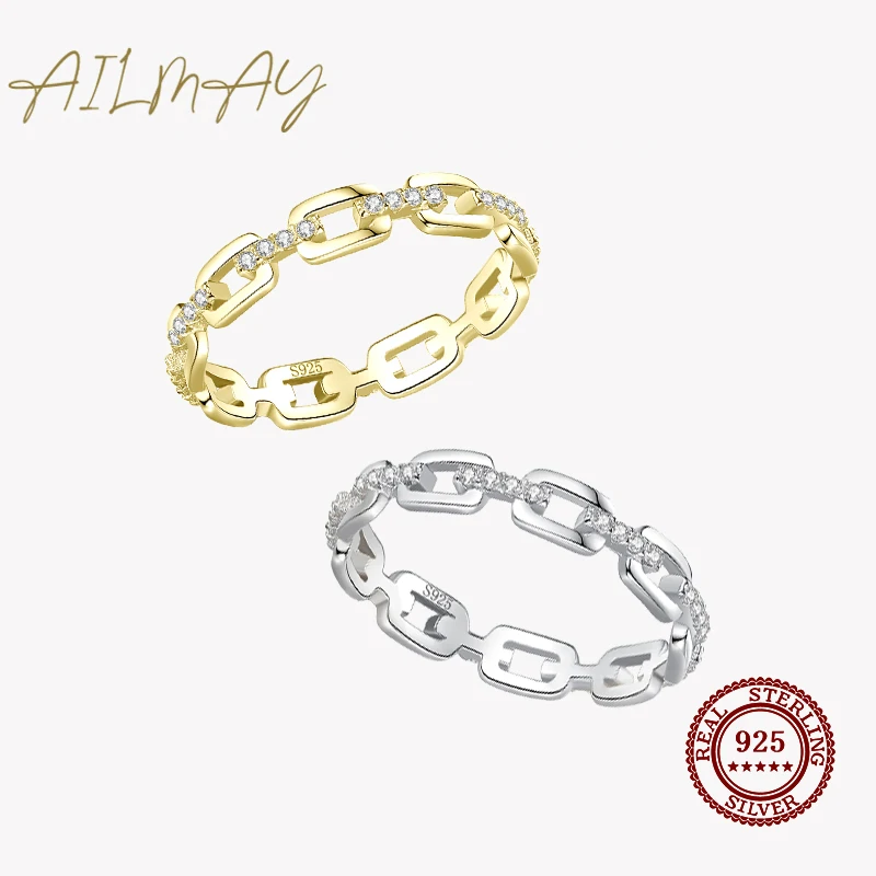Модное кольцо Ailmay из настоящего серебра 925 пробы с прозрачным Цирконом золотого цвета для женщин и девушек, аксессуары для вечеринок, ювелирные изделия