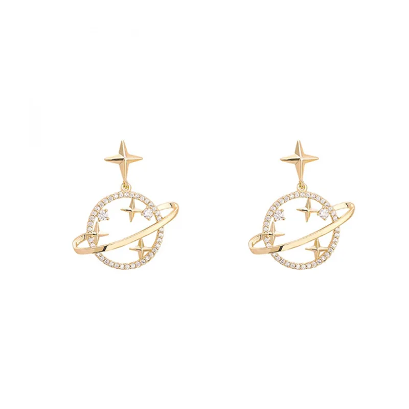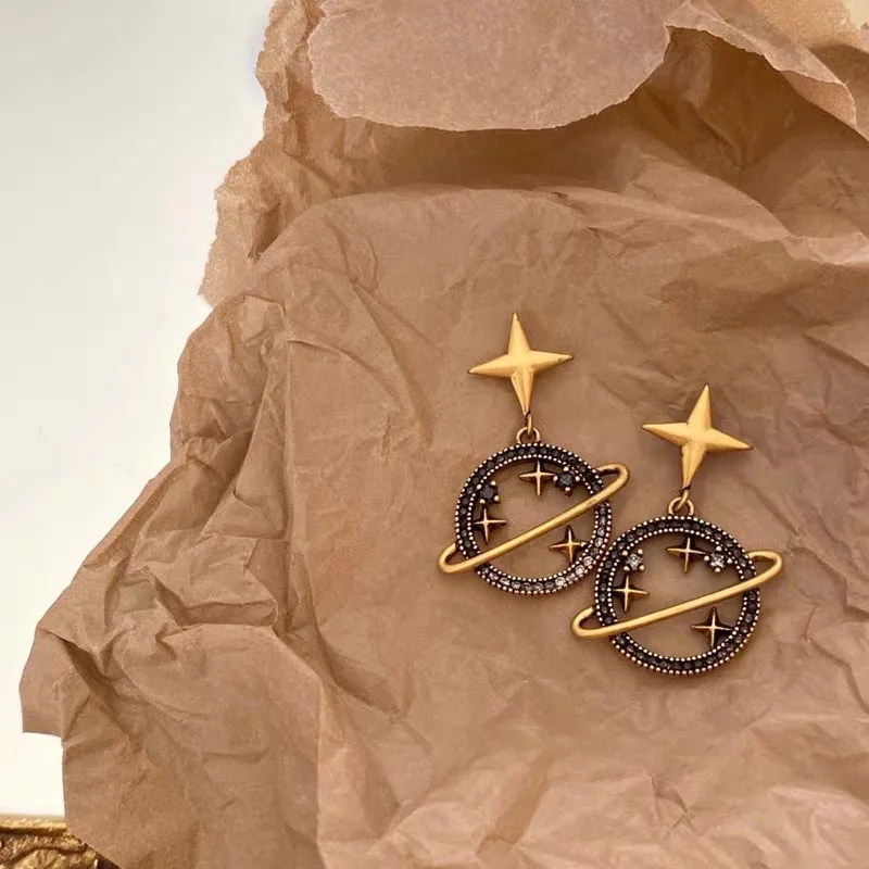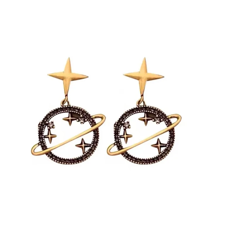 Fasihon Корея черный циркон Вселенная серьги планета для женщин фантастические креативные Сатурн Висячие серьги для женщин ювелирные изделия ZN-26
