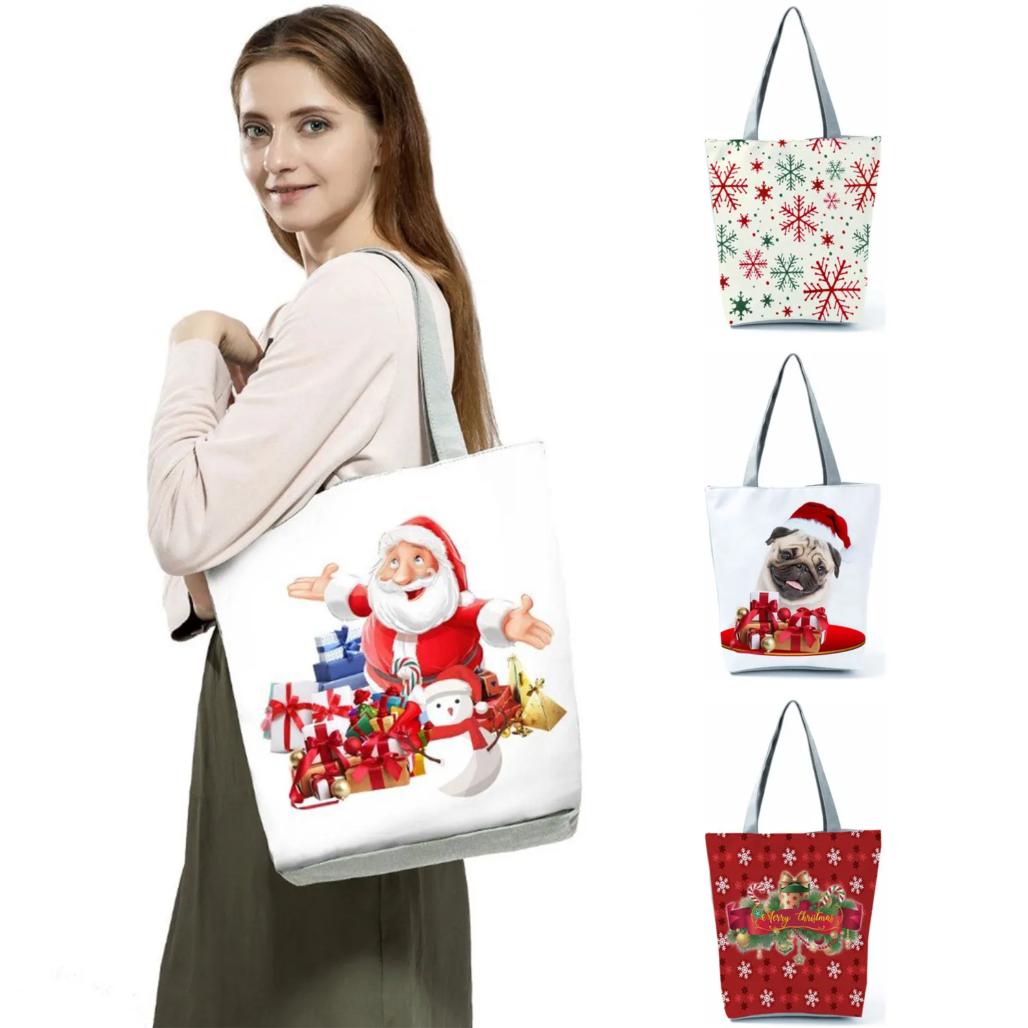 Санта Клаус Снежинка сумки с печатью Рождество шикарная сумка на плечо на открытом воздухе хозяйственная сумка для путешествий Экологичная пляжная сумка