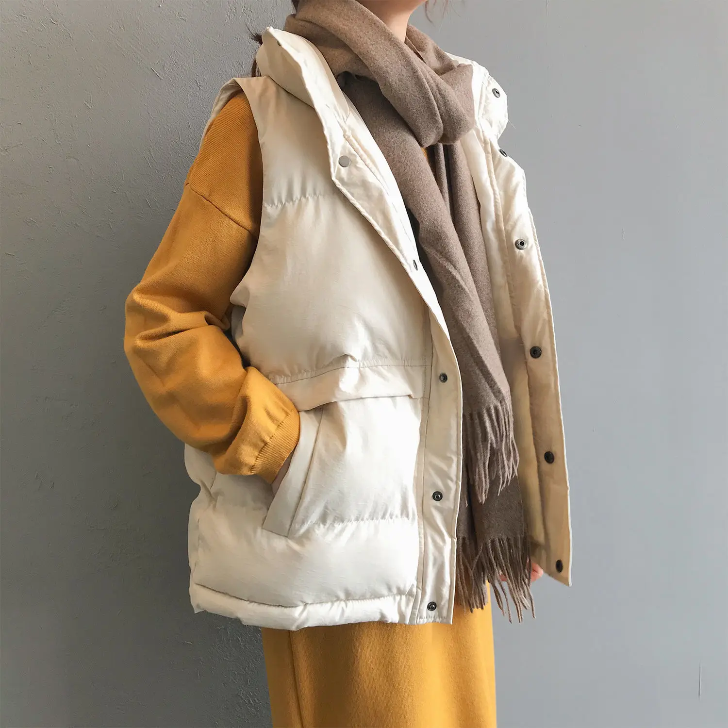 Женская куртка без рукавов, зимний Свободный жилет, пальто на пугов...