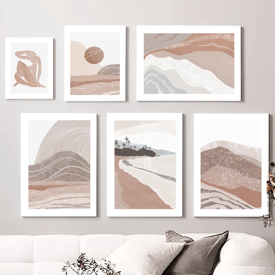 Горы кривая Бохо Терракотовая стена искусство холст картина скандинавские плакаты и принты настенные картины для гостиной богемный Декор