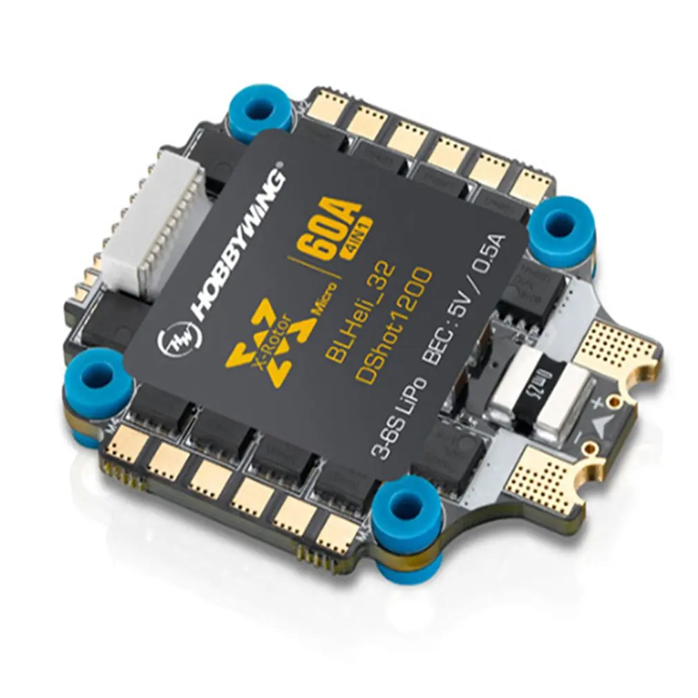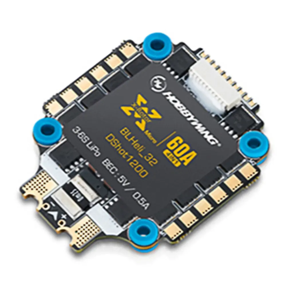 1. В том же размере и размере, что и Контроллер полета, есть 4 высокопроизводительных 60A BLHeli-32 DShot1200 ESCs, 5V BEC.