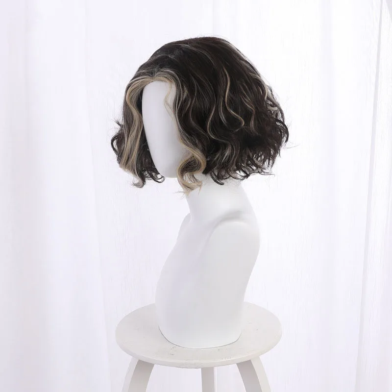 Парик для косплея Loki Sylvie на Хэллоуин, термостойкий синтетический с короткими вьющимися черными светлыми смешанными волосами + шапочка для парика