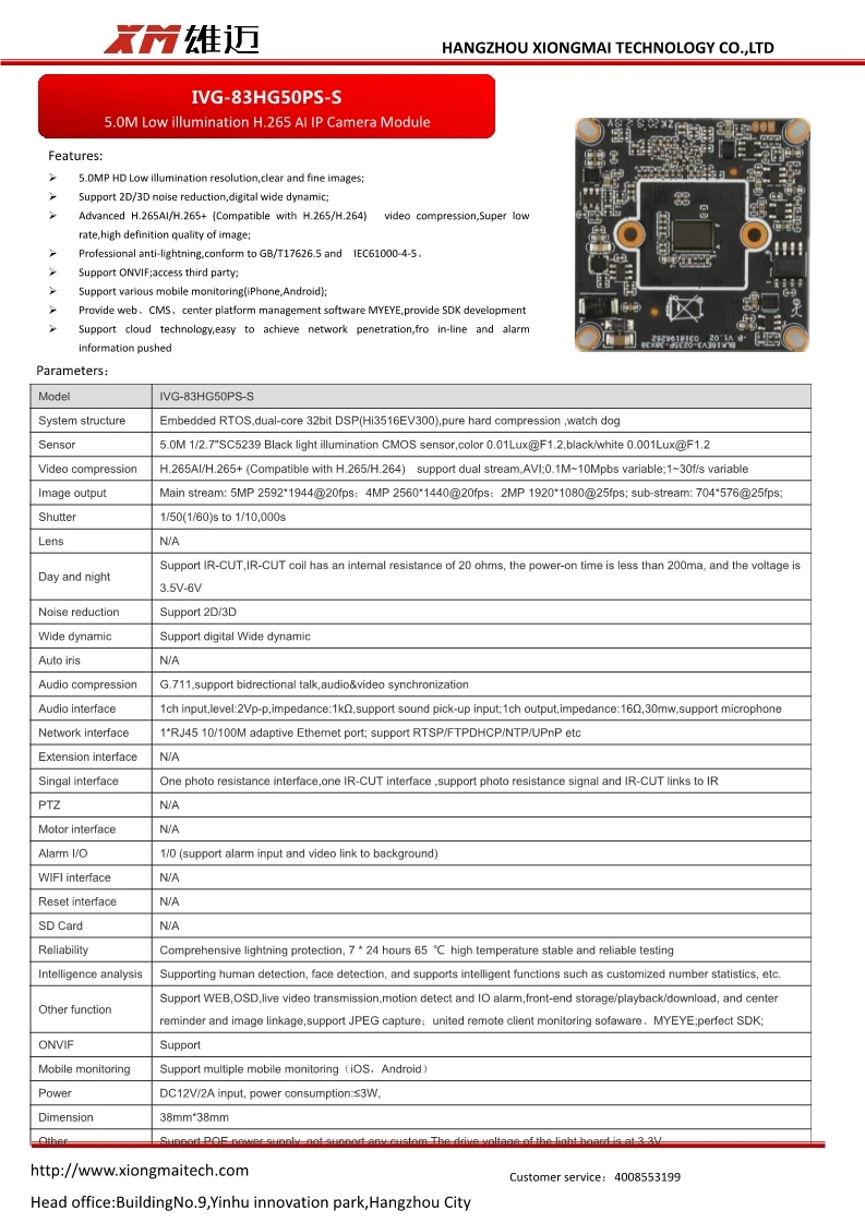 Содержит: модуль + IR-CUT + 3,6 мм LEN (дополнительный объектив).* Облачный сервер/сервис расположен по адресу (3w points) XMeye.net.* IP по умолчанию: 192.168.1.10* Имя входа: admin (чехол чувствительный, не Admin); Без пароля.Важно:(1) Датчик изображения CMOS(2) необходимо использовать более мощный ПК или XM-NVR для декодирования/воспроизведения H.264 / 265 видео.Мм