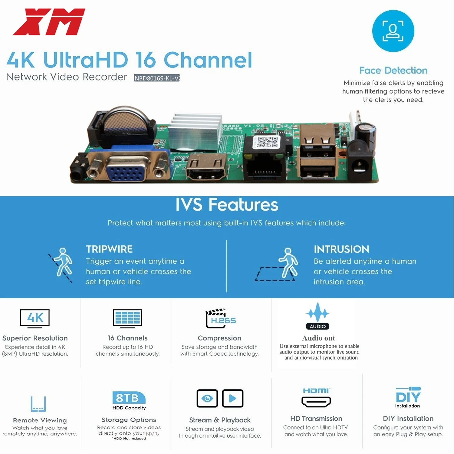 XM 4K 16 Ch NVR H.265 сетевой видеорегистратор