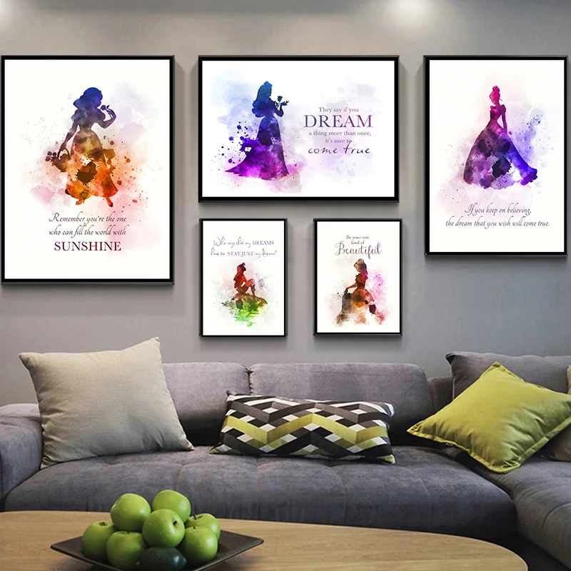 Disney Принцесса акварельные художественные картины плакаты и принт...
