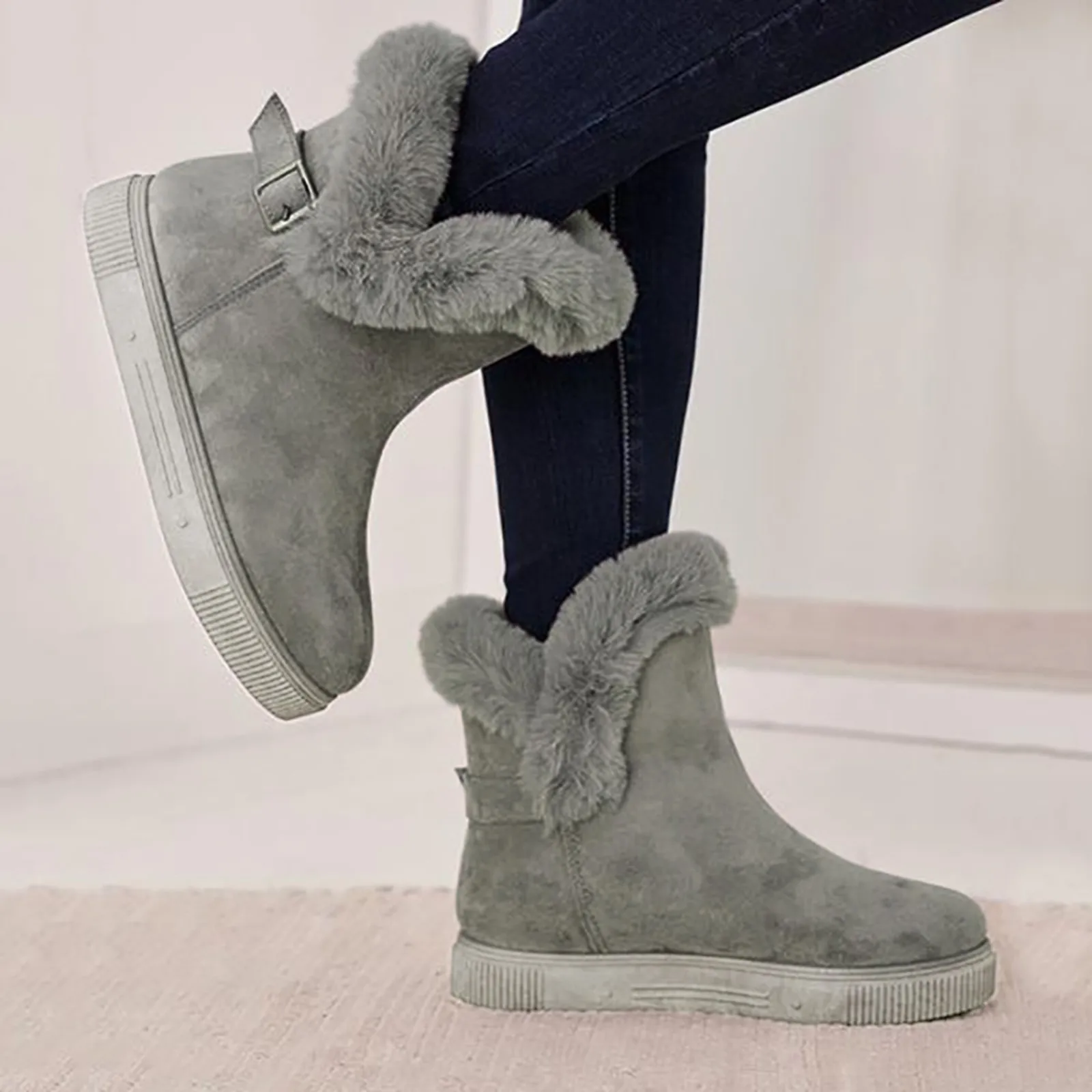 Модные зимние плюшевые женские ботинки, однотонные повседневные бот...
