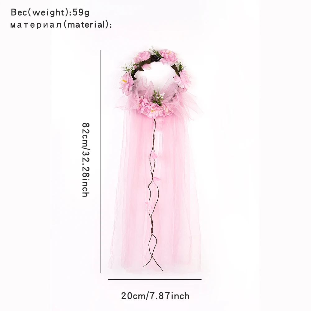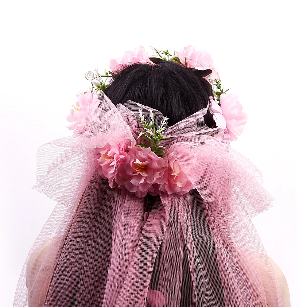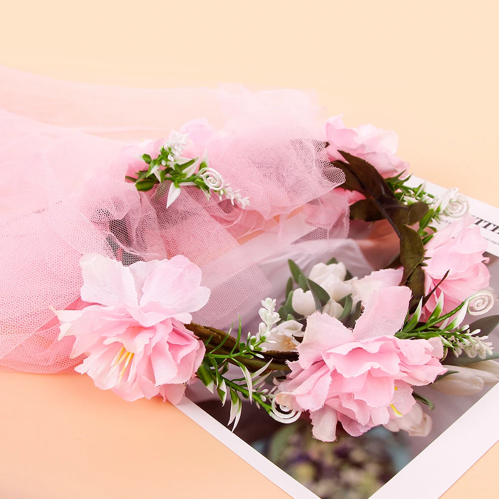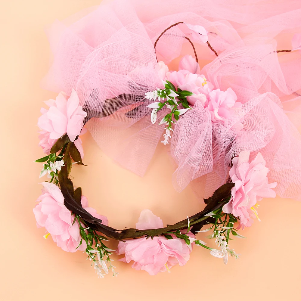 Женское украшение для волос для вечеринки, длинный цветок Фата с венком, повязка на голову, украшение для фотографий подружки невесты, ювелирные изделия