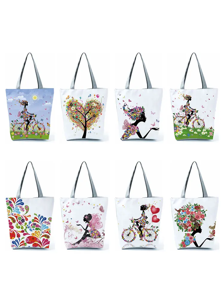 Красивая школьная сумка для девочек, сумки-тоуты, большая женская сумка с цветочным принтом, многоразовая сумка через плечо для продуктов, женская сумка, эко-сумка