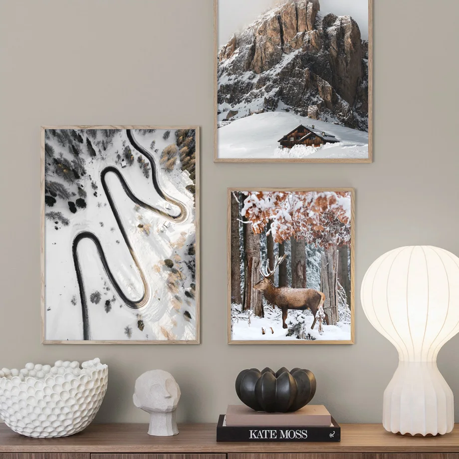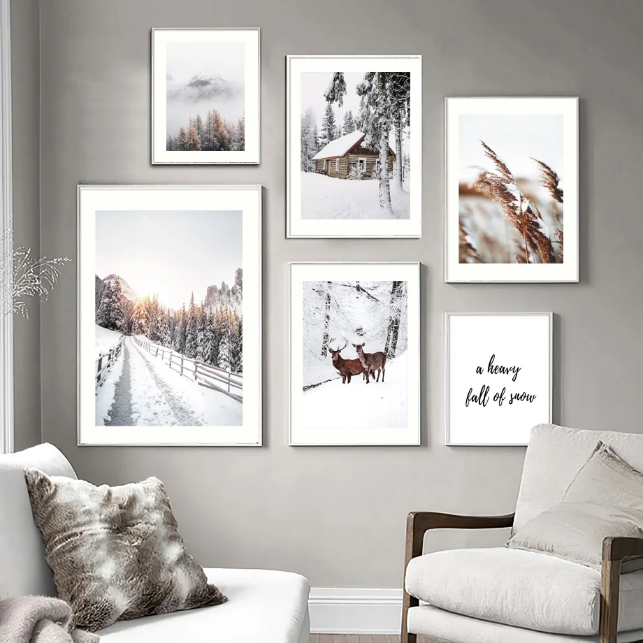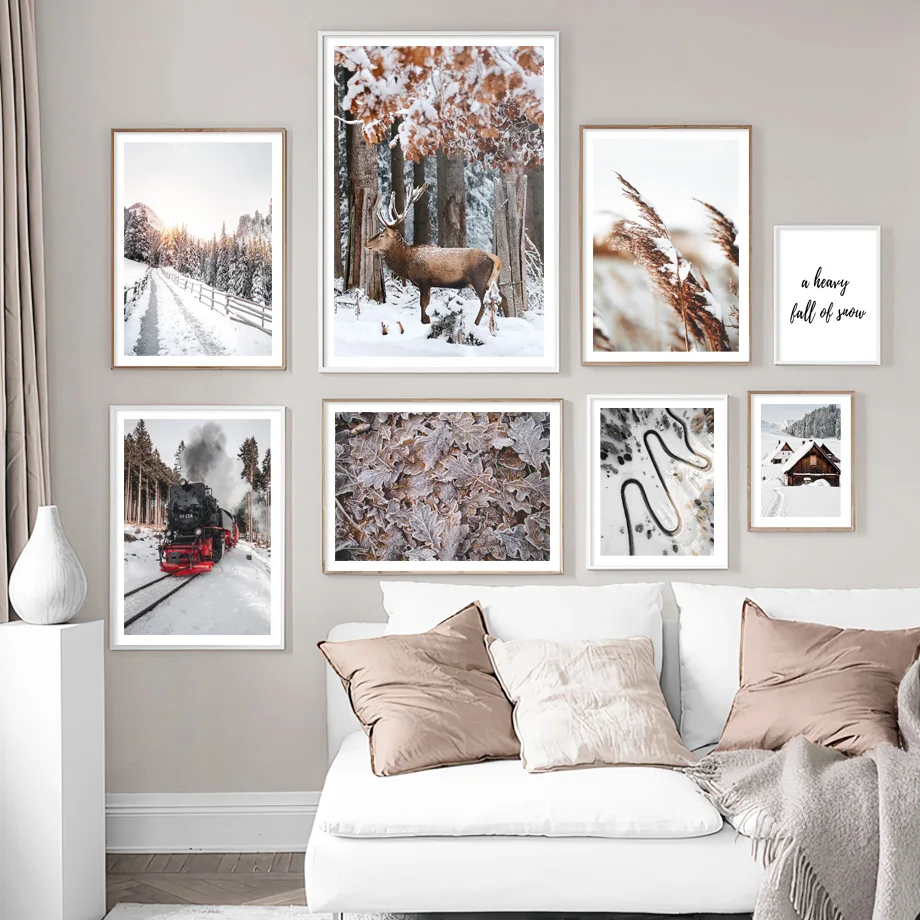 Зимний Снежный пейзаж, тростниковый лес, горный поезд, скандинавский стиль, настенная живопись, холст, постеры и принты, декор для гостиной
