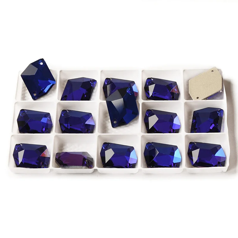 Стеклянные стразы в форме восьмиугольника, цвета сапфира, 12, шт.уп...