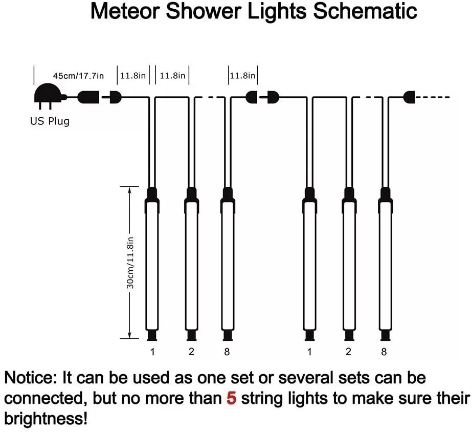 1. Эффект метеоритного дождя, романтическая эстетика 2. Светильник каждой лампы включается и выключается один за другим последовательно и быстро, как метеоритный дождь или падающий снег в ночном небе 3. Применение: рыночный инженерный светильник ing, архитектурное украшение, украшение деревьев вдоль улиц, парков, украшения, декоративные реки, Городской Ночной светильник ing 4. Водонепроницаемый, Пылезащитный, устойчивый к коррозии 5. Низкое энергопотребление, энергосбережение