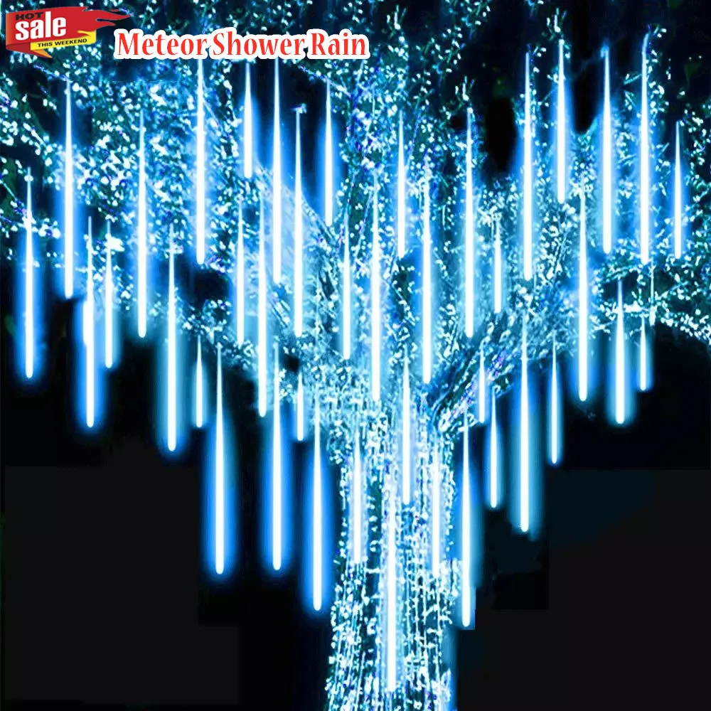 Рождественская светодиодная гирлянда 3050 см, 8 трубок, метеоритный...