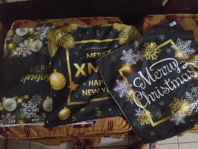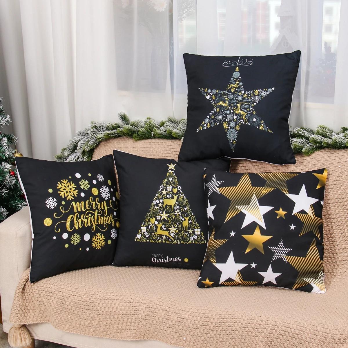 Рождественское украшение для дома, золото черный Чехол на подушку, ...