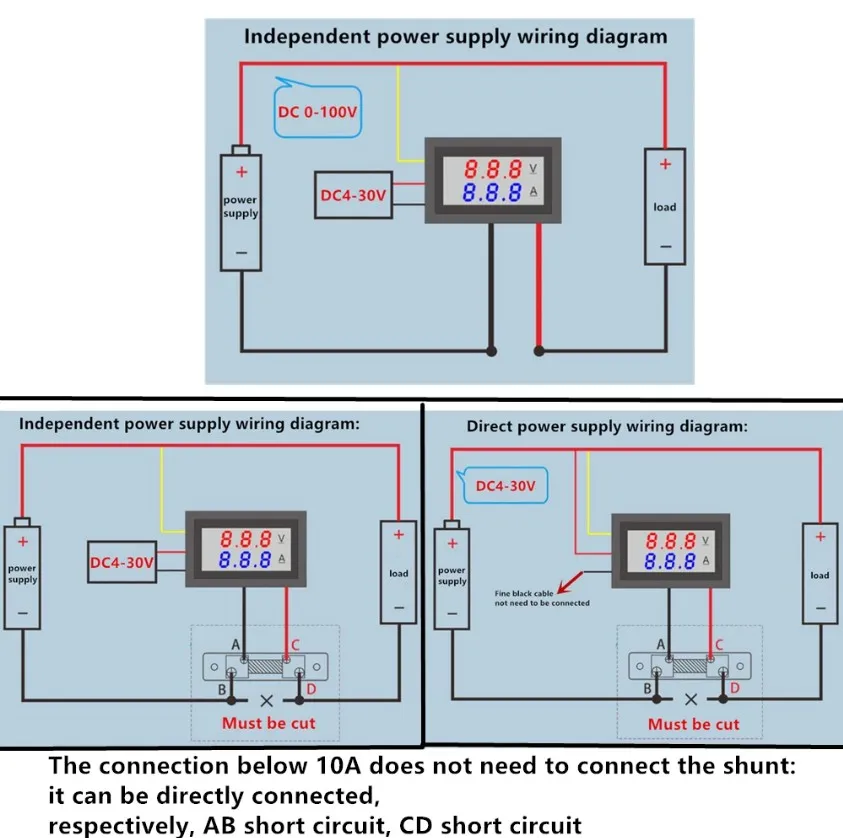 Подключение ниже 10 А не нужно для подключения шунта:Он может быть напрямую подключен,Соответственно, короткое замыкание AB, короткое замыкание CD