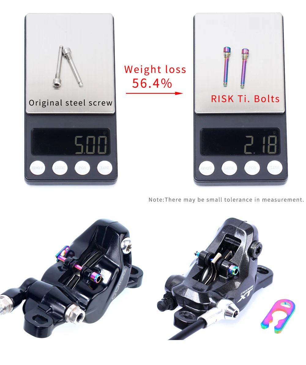 RISK RT114 M6 кровотечение сосковПодходит для всех SHI-MANO тормозов масляных дисков.Соска должна использоваться с оригинальным уплотнительным кольцом.Сравнение весаОригинальный стальной винтВинты из титанового сплава41.8% для потери весаПримечание: возможны небольшие погрешности при измерении.