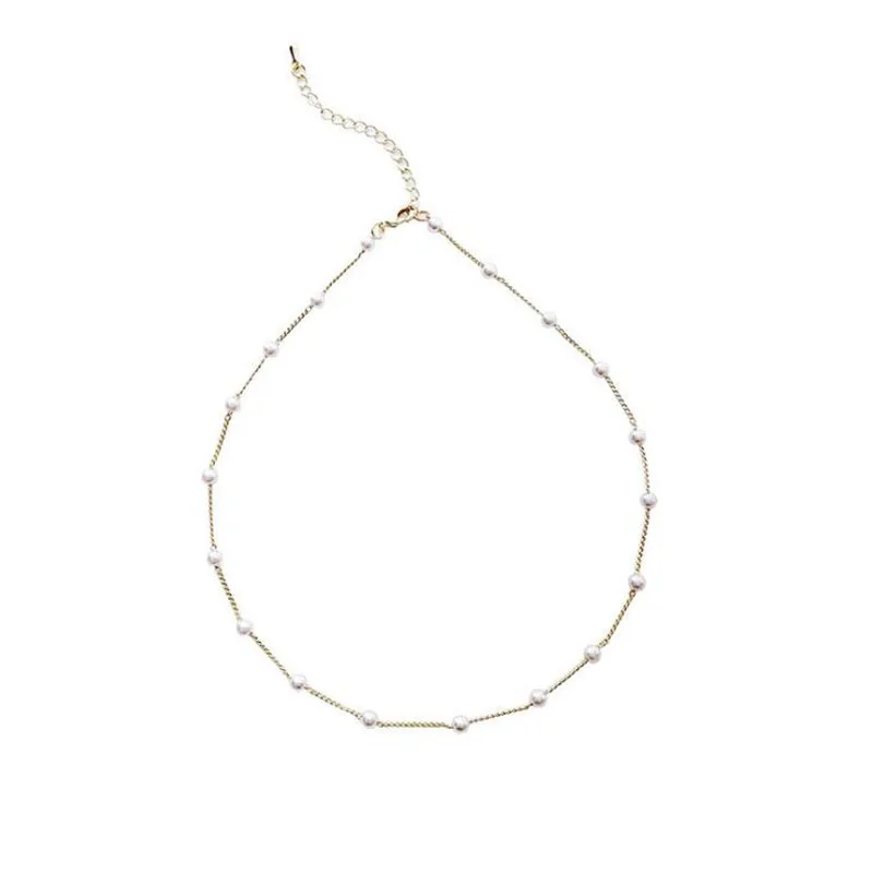Ожерелье-чокер женское с жемчугом, простая Готическая цепочка с жемчугом в стиле барокко, модное ожерелье золотистого цвета с бусинами, ювелирное украшение для свадьбы