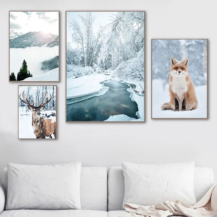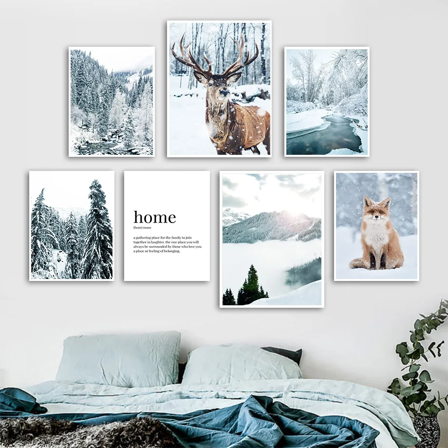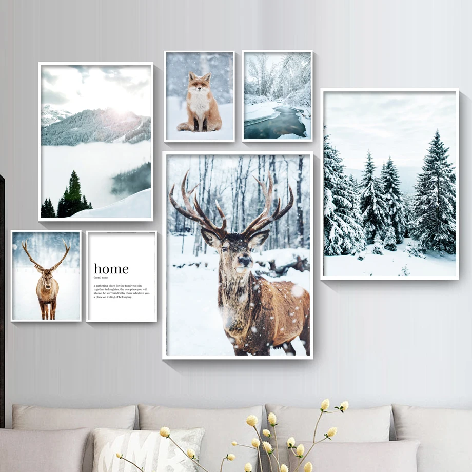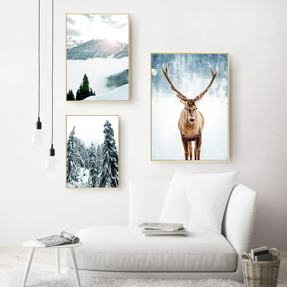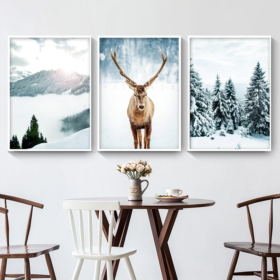 Настенная картина Снежная гора, сосна, лес, лось, настенная Картина...