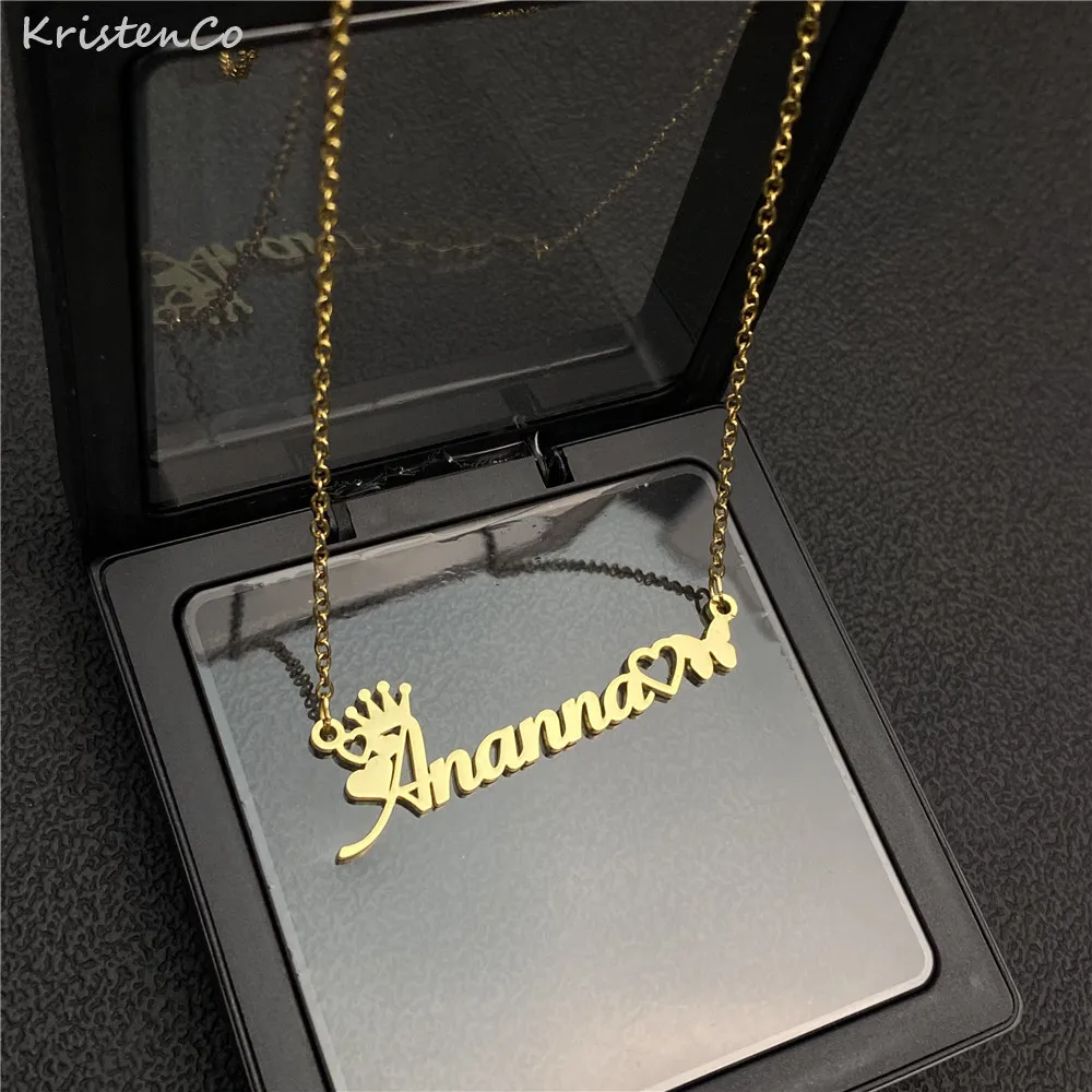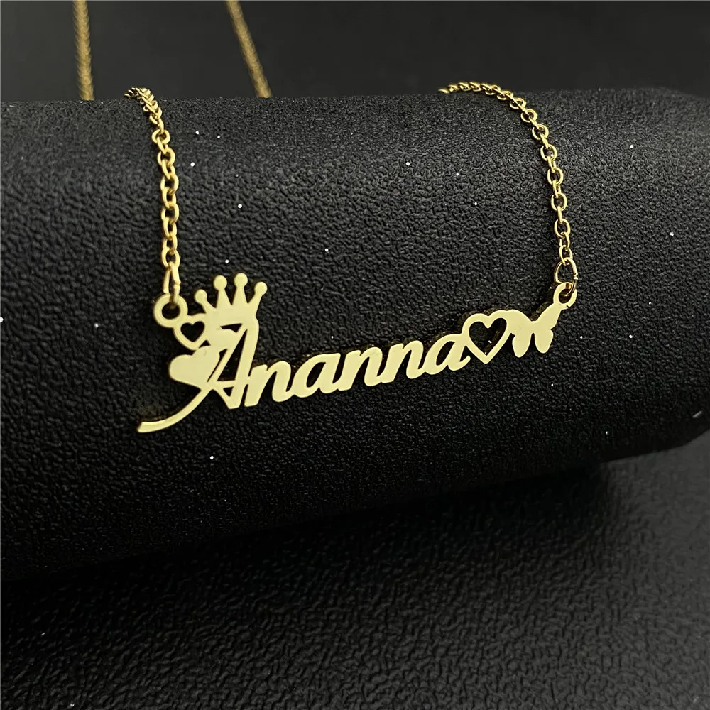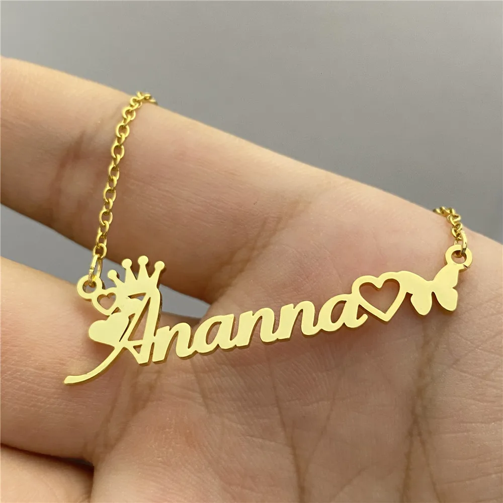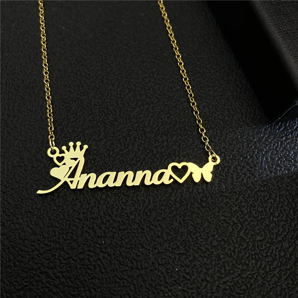 Индивидуальное ожерелье с именем из нержавеющей стали, индивидуальное женское ожерелье с короной и бабочкой, ювелирное изделие в подарок