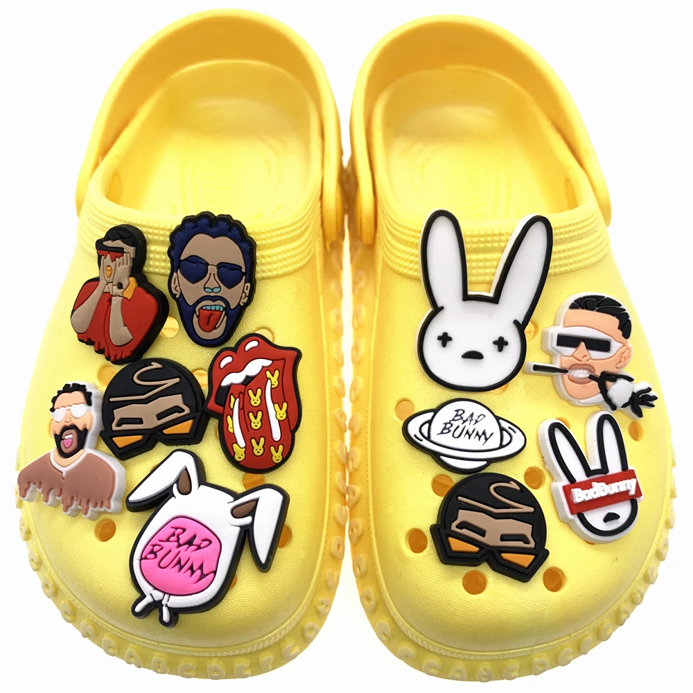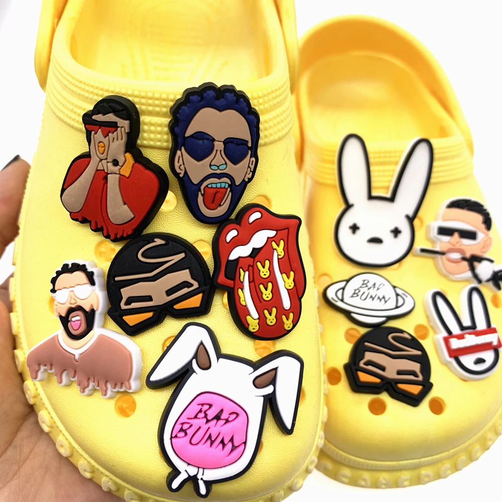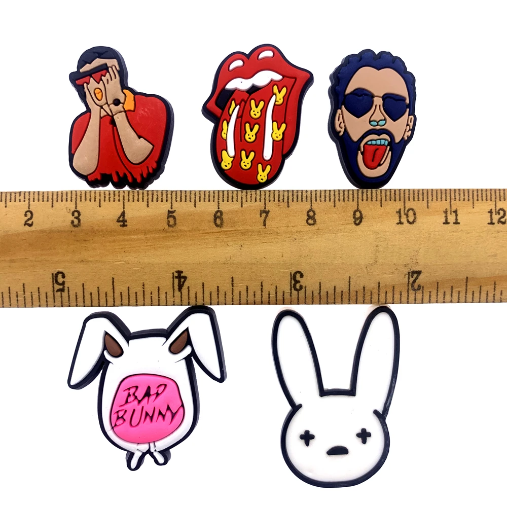Новинка 10 шт. подвески для обуви в мультяшном стиле значок плохого кролика Кроксы аксессуары ремесла мягкие пряжки в виде кролика в виде животного для детей Подарки для вечеринки