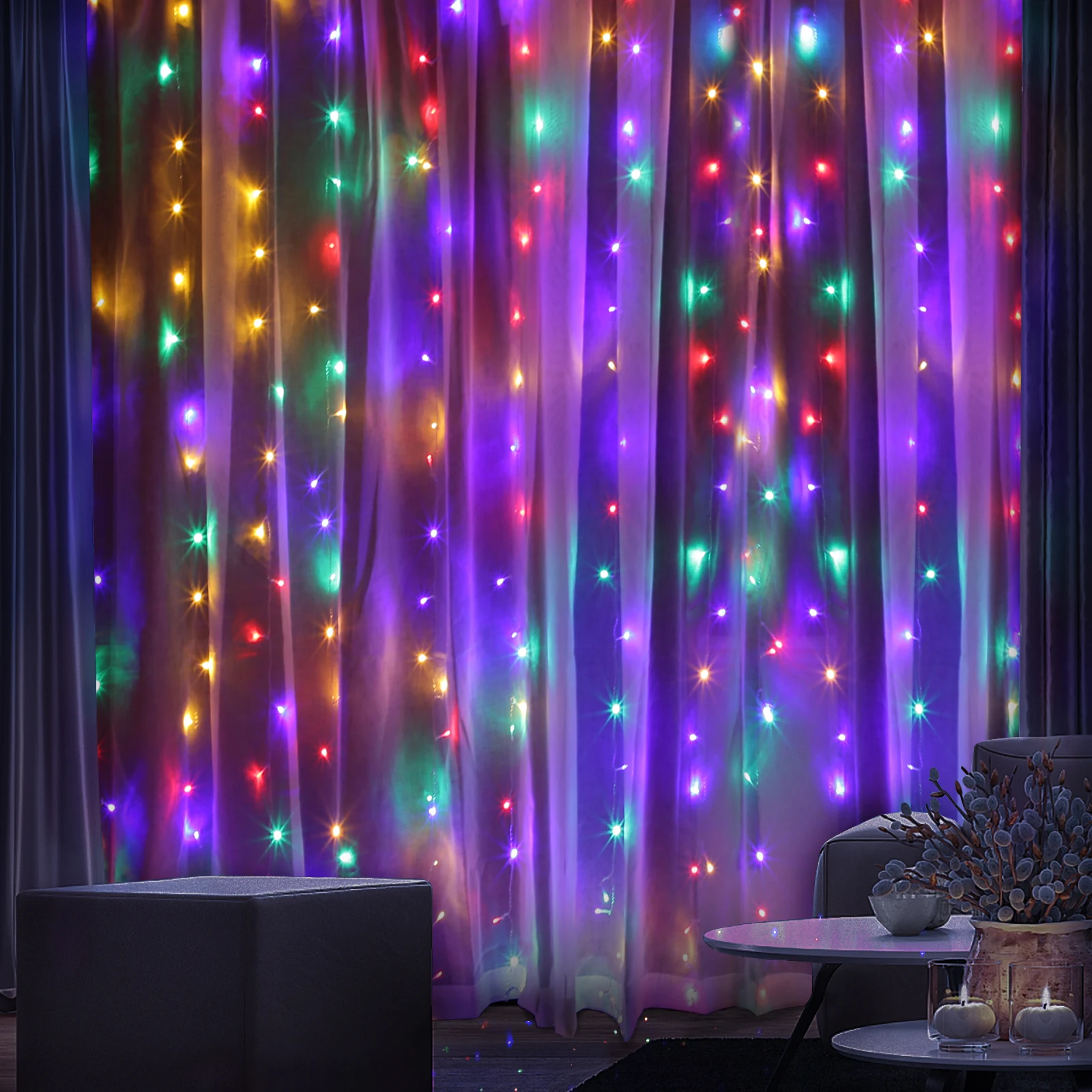 Комнатная гирлянда, занавески, рождественское и новогоднее освещени...