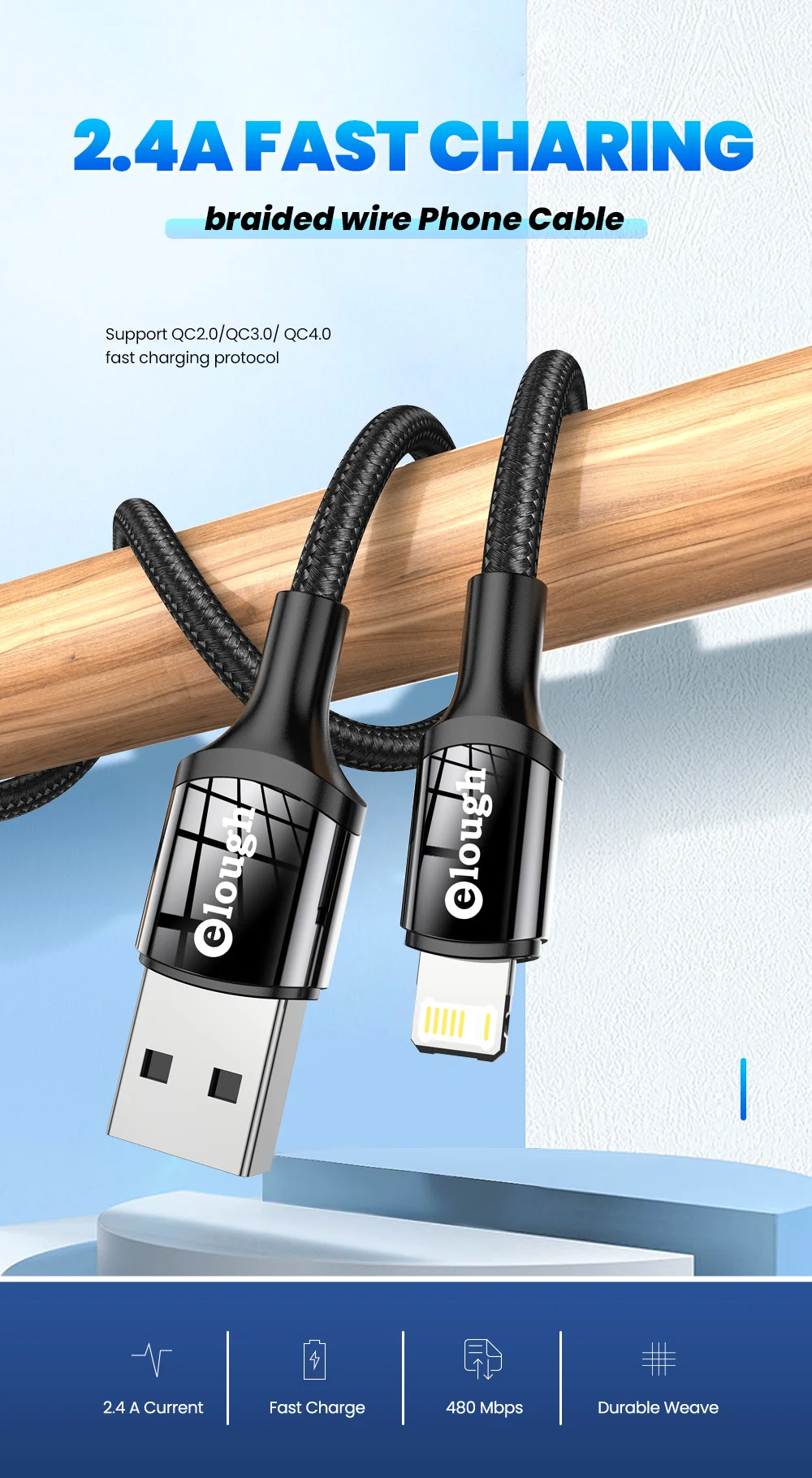 Кабель Elough USB, для iPhone 13, 12, 11 Pro Max, Xs, X, 8, 7 Plus, с поддержкой быстрой зарядки, 2,4 А, для iPhone, iPad, Macbook