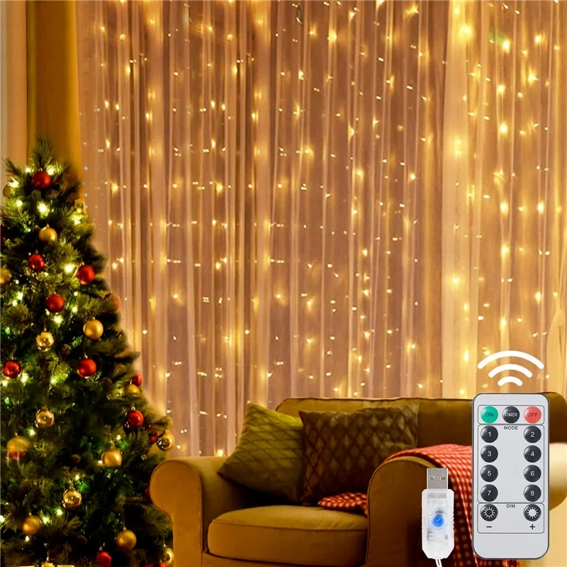 СВЕТОДИОДНАЯ Гирлянда-занавеска 3 м, гирлянда-занавеска с USB, гирлянда с дистанционным управлением, Рождественское украшение для дома, Новогодняя лампа, праздничное украшение