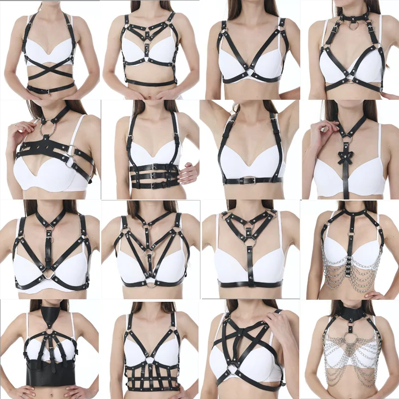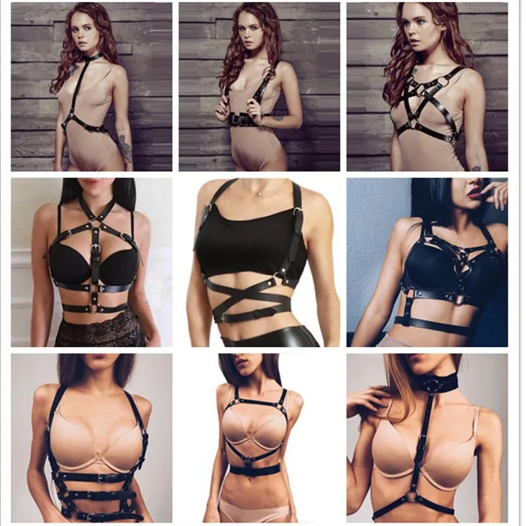 Сексуальное женское нижнее белье, кожаная портупея, бондаж, бюстгал...