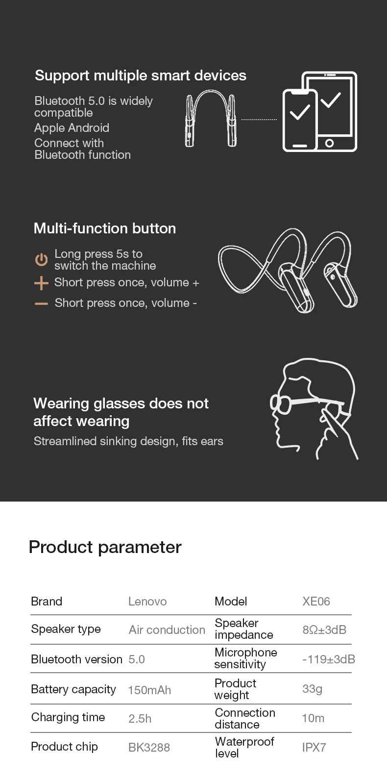 Lenovo XE66 Pro Двойной динамический Шейным Беспроводные наушники, ...
