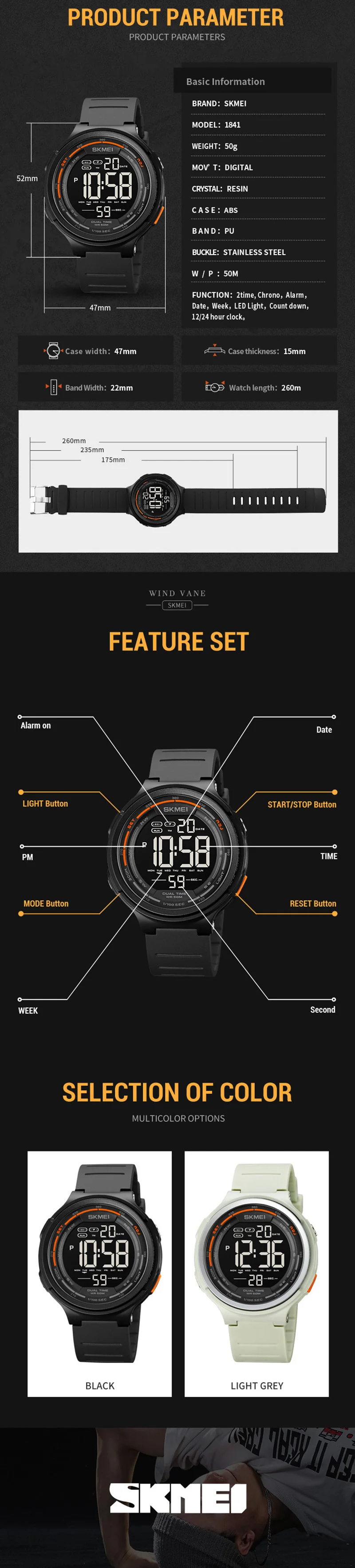SKMEI светодиодный светильник Цифровые мужские спортивные часы 5 бар водонепроницаемые наручные часы для мужчин мужские часы relogio masculino 1841