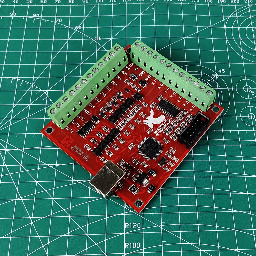 1. Особенности 1) Поддержка для 4-осевого связь, вы можете подключить четыре привод шагового двигателя или сервоприводы; 2) Максимальный шаг-частота импульсов составляет 100 кГц, который подходит для сервопривода или шаговый двигатель; 3) Поддержка автоматического зонда 4) Поддержка аварийного ввода 5) Поддержка концевого выключателя 6) Поддержка подключения электронного маховика 7) необходимо использовать внешний источник питания постоянного тока 24 В для изоляции USB и внешнего порта и сделать систему более стабильной. 8) есть выходной порт 0-10 В, вы можете использовать программное обеспечение mach3 для управления скоростью двигателя шпинделя. 9) 4 входа общего назначения, вы можете подключить концевой выключатель, эстоп переключатель, зонд переключатель, обратно к нулю и другие устройства 10)4 общего назначения изолированный релейный привод выходной интерфейс, может управлять четырьмя реле для управления запуском шпинделя, вращением вперед и обратным вращением, насосами и другим устройством; 11)1 светодиодный статус, Укажите Статус подключения на плате.