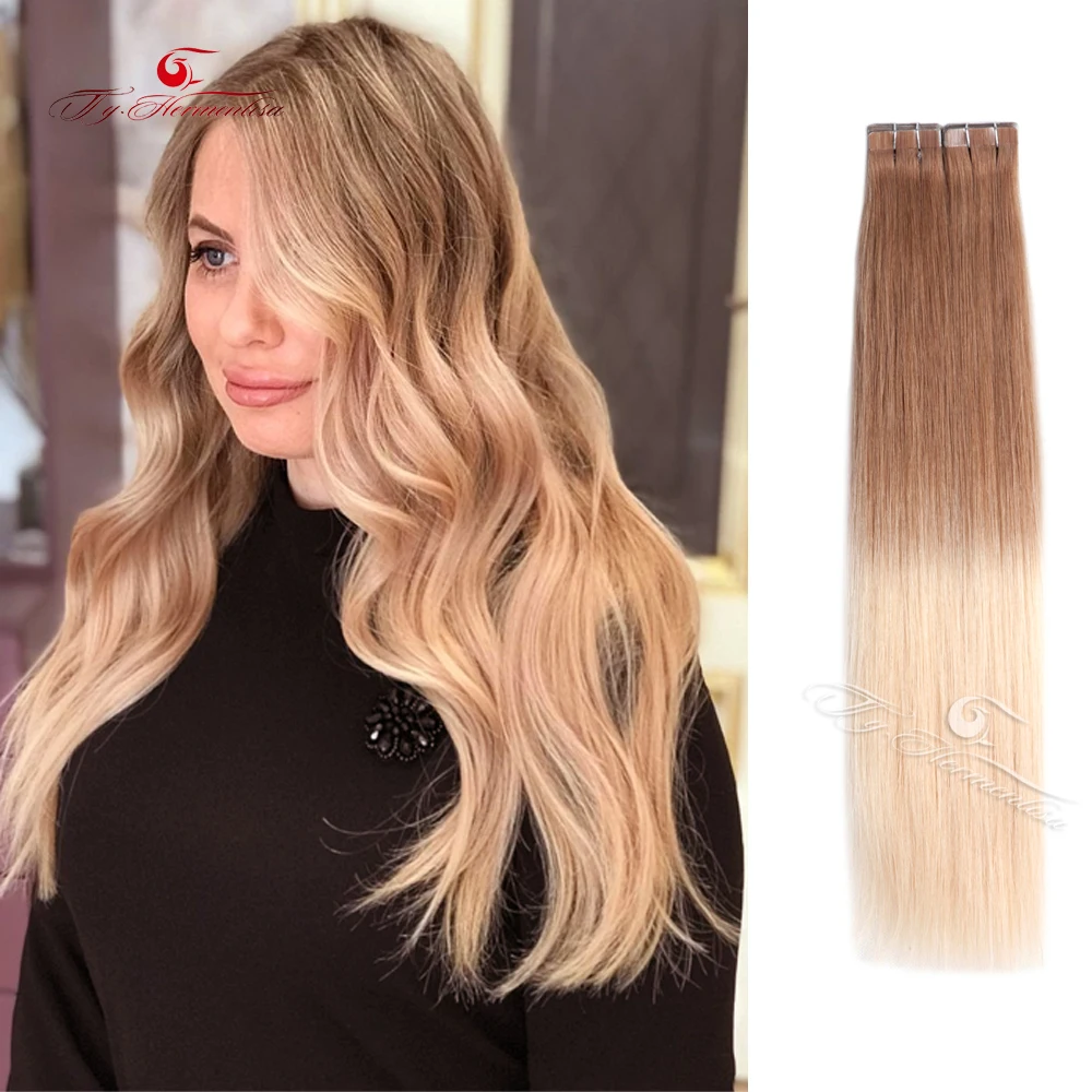 Ty.Hermenlisa лента для наращивания волос 100% Человеческие волосы Remy двойной натянутый клейкий волос Омбре цветное наращивание 14-22 дюйма