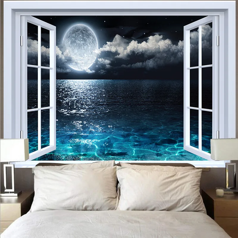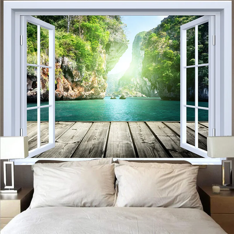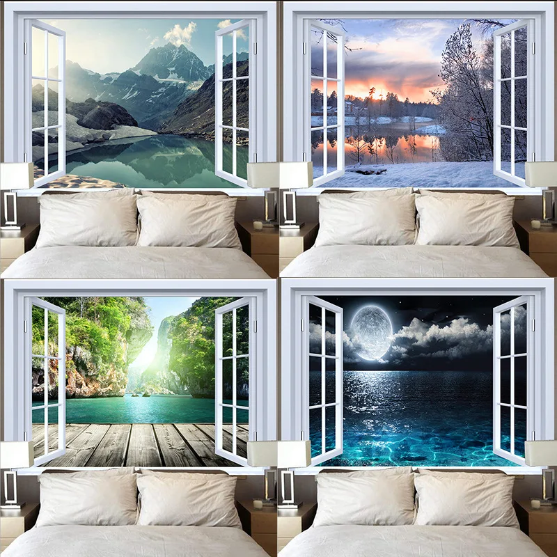 Настенный гобелен с окном, настенная ткань, Ландшафтная настенная ткань, украшение для гостиной, домашняя мебель, фоновая роспись