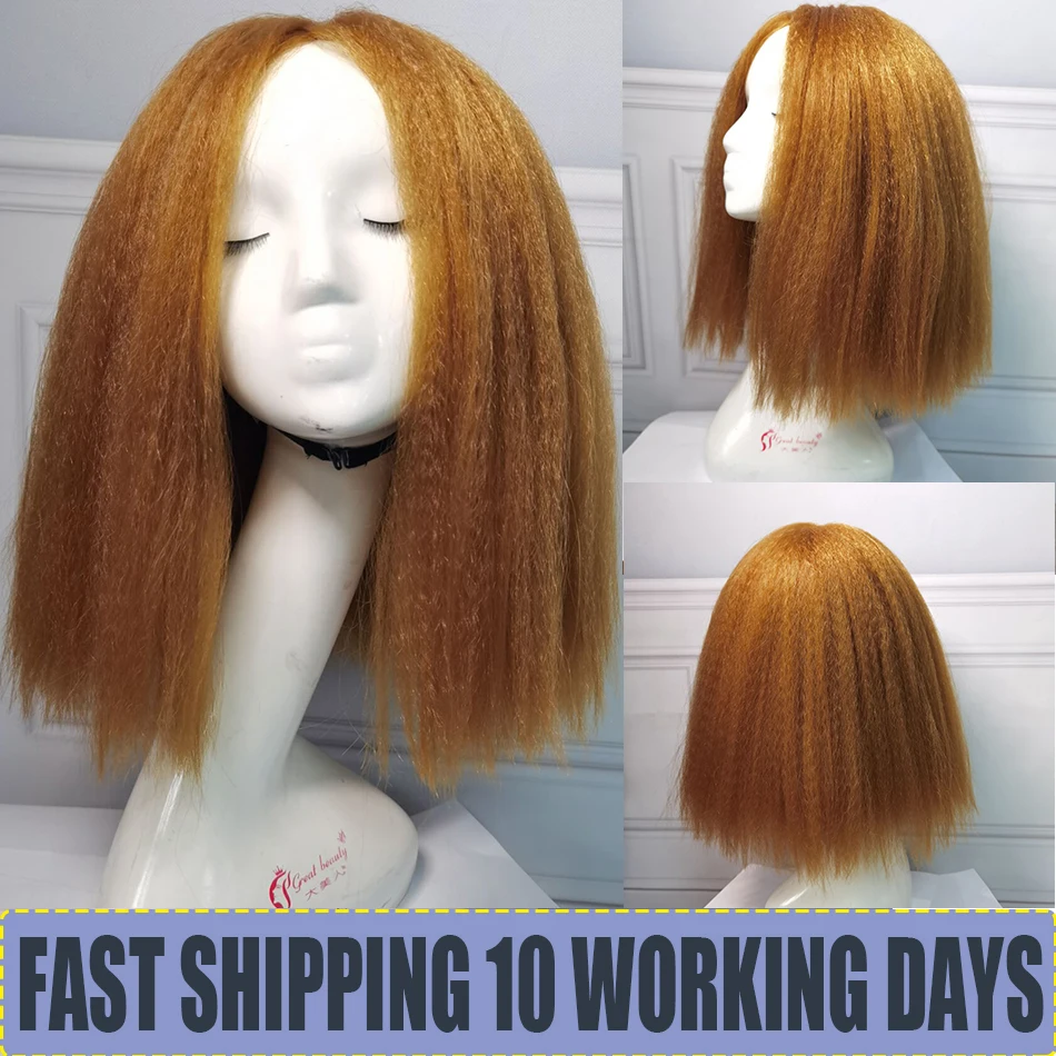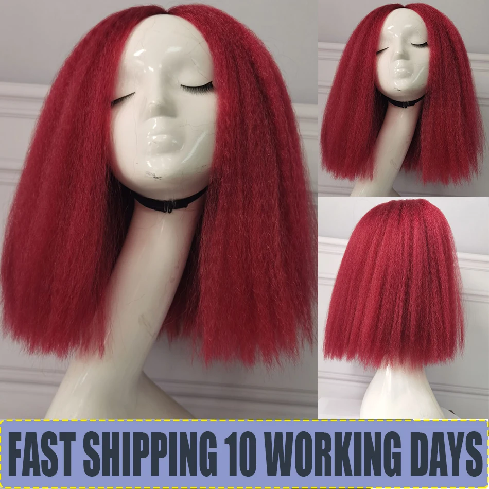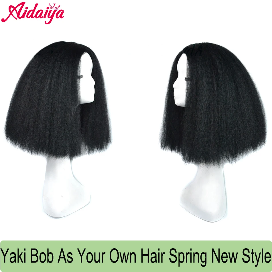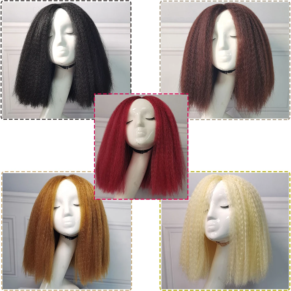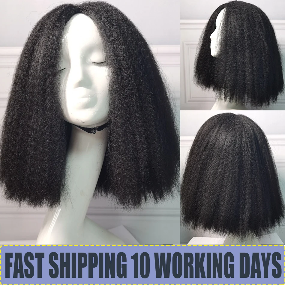 Афро Яки прямой боб парик синтетические высокотемпературные волосы курчавые прямые боб средней длины парики для чернокожих женщин