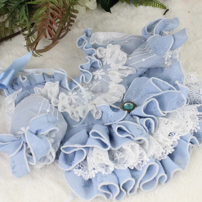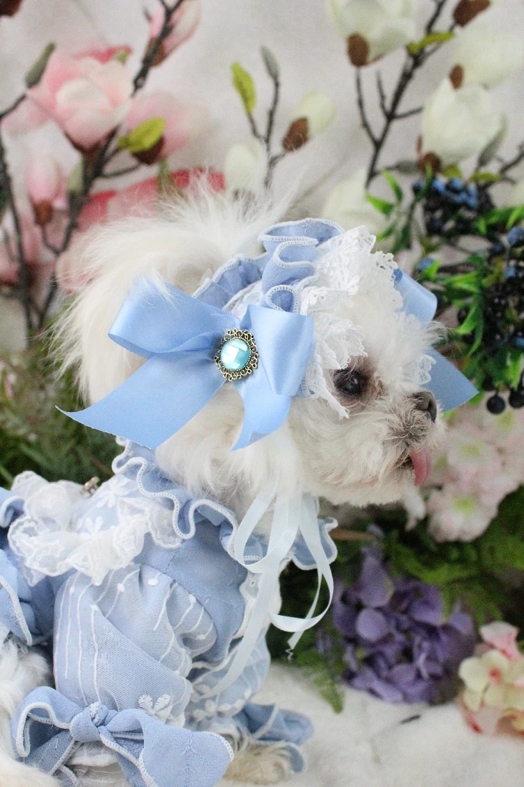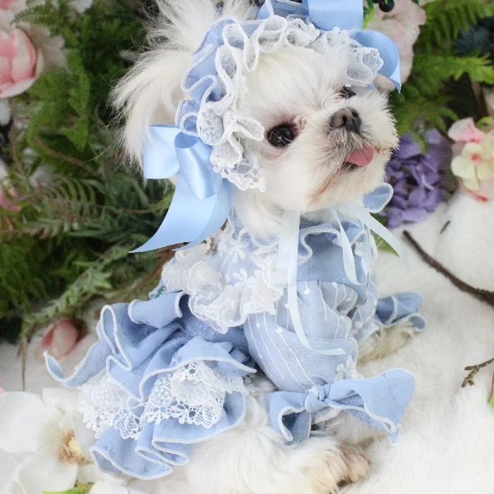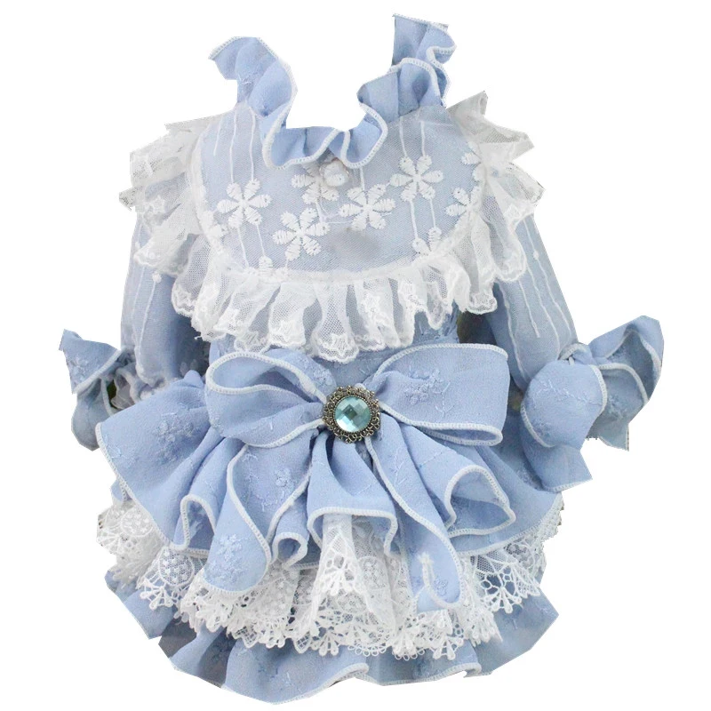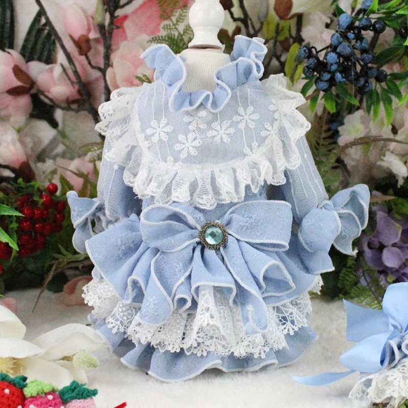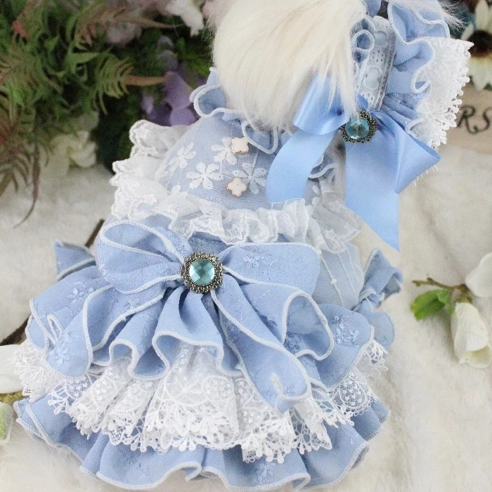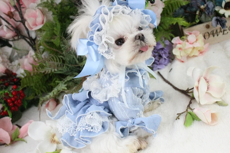 Новинка 2021, одежда для домашних животных, голубая Одежда для собак в стиле горничной, кружевные тканевые платья ручной работы для маленьких и средних собак, одежда для пуделя, пальто, платье